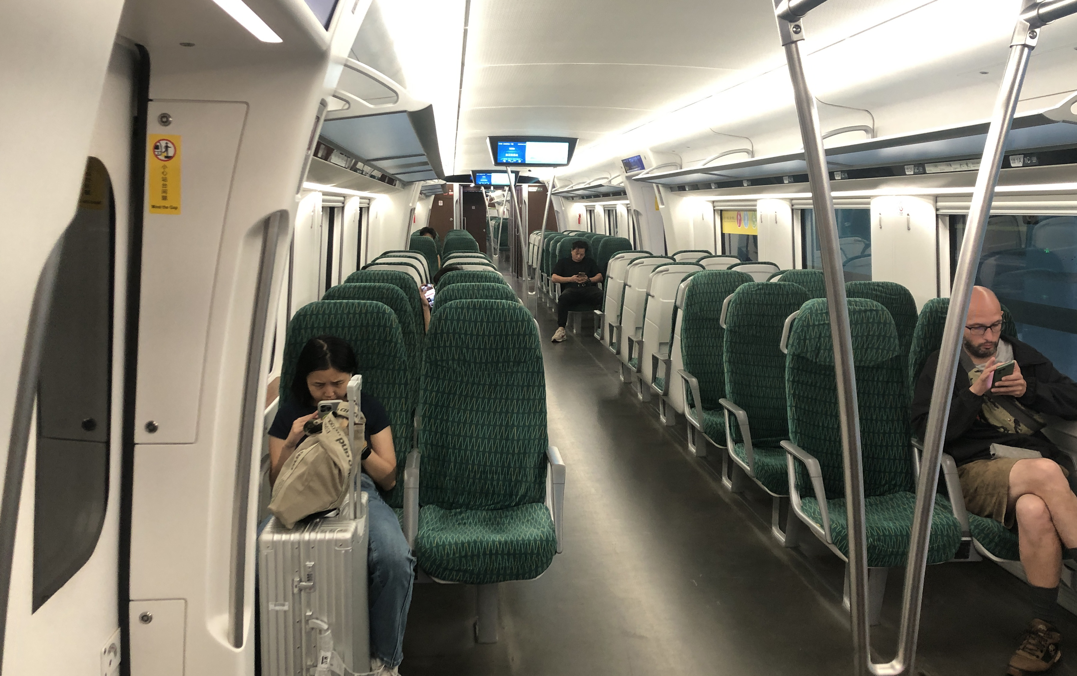 如今,廣東城際越來越多線路「公交化」運營,廣州地鐵集團負責運營的城際鐵路里程到今年底將達550公里,地鐵+城際總里程將超過1350公里。記者10日開啟「搭城際遊灣區」之旅,在入站時僅憑廣州地鐵APP「乘車碼」便可掃碼通過閘機,車到即走;而城際鐵路「公交化」多元支付票務系統還支持普通羊城通、嶺南通、全國交通一卡通等。記者看到,「公交化」運營的城際列車不設座位號,旅客見到空座即可自由乘坐。與地鐵不同的是,車廂連接處設有洗手間,座位亦更舒適。