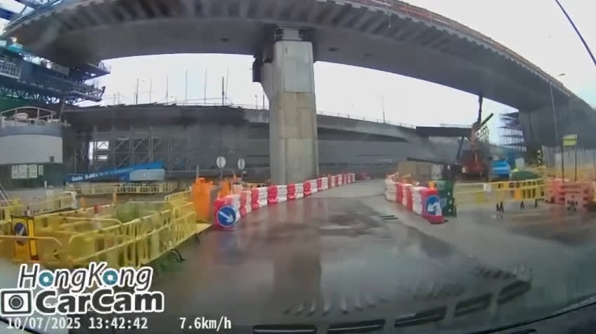 大公文匯全媒體報道,港珠澳大橋香港口岸一地盤今午(10日)發生致命工業意外。兩名工人被工字鐵擊中,1死1傷。有網友於社交平台發布「車Cam」視頻,記錄下案發時驚險一刻。