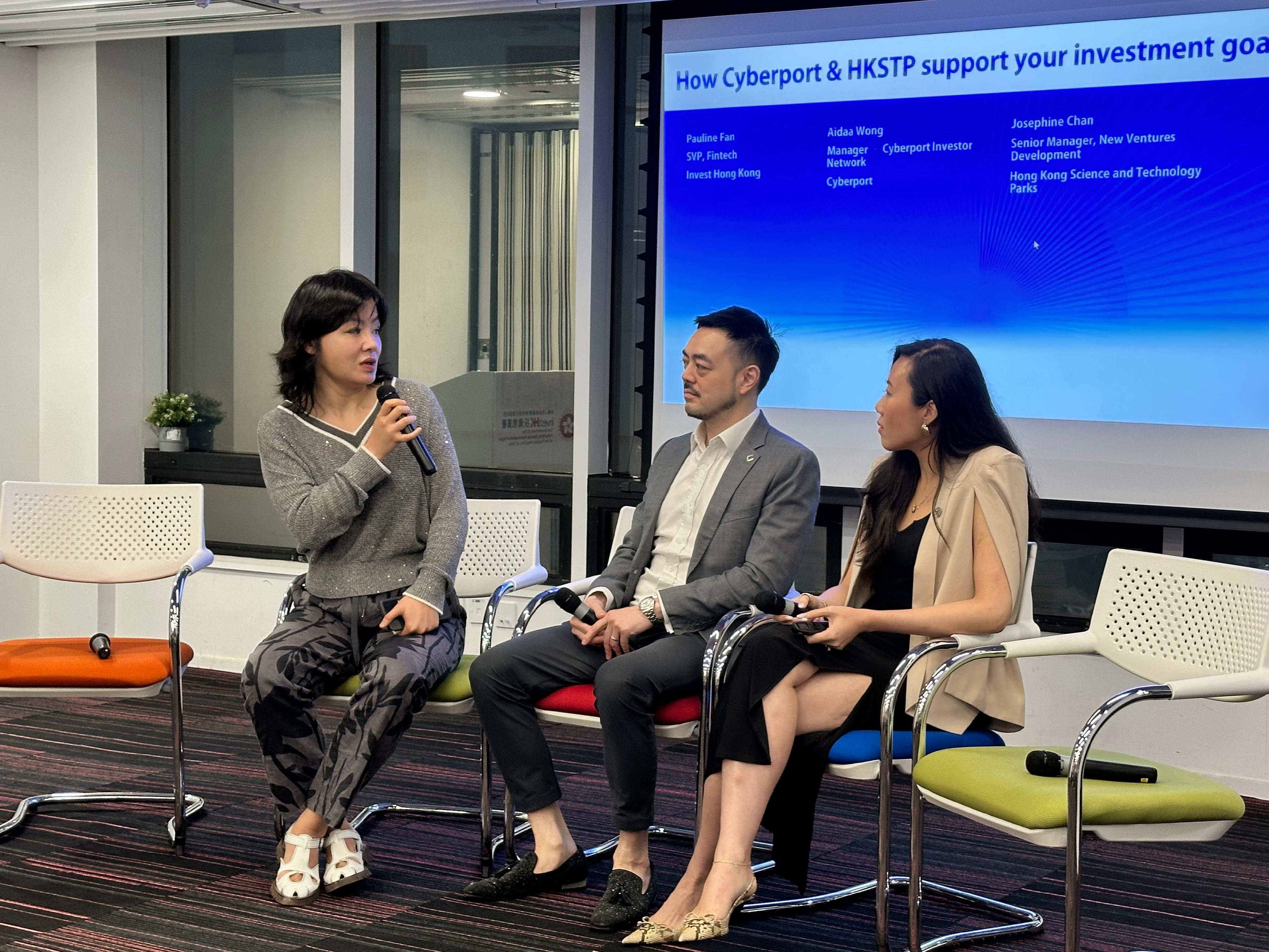 此外,數碼港金融科技總監嚴滌宇分享數碼港在支持金融科技和Web3企業方面的經驗和成果。香港科技園公司創新發展高級經理陳詠楠介紹香港科技園為企業提供的創新資源和發展平台。