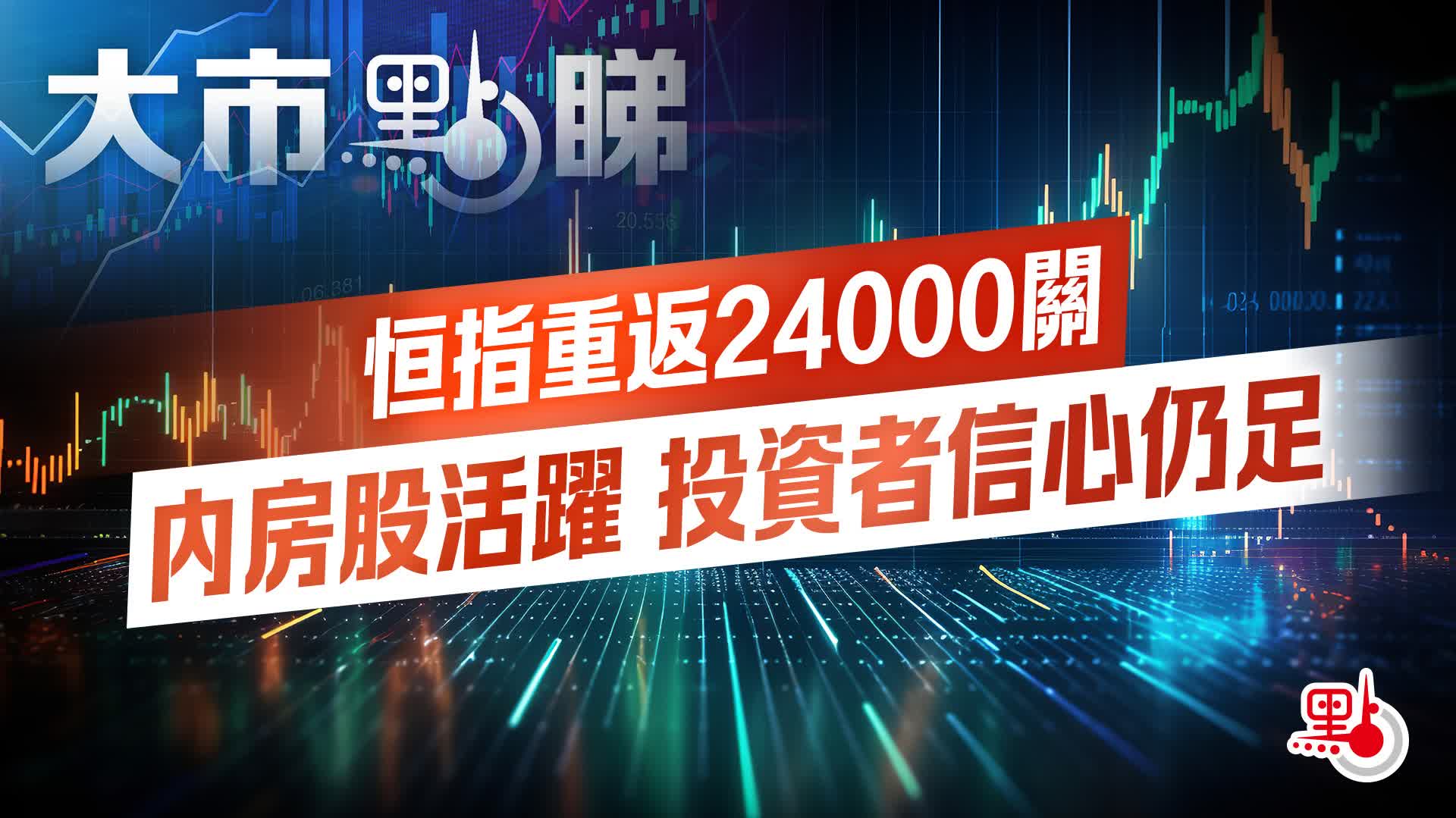 截至收盤,恒指報24028,升136點或0.569%。國企指數報8668,升70點或0.826%。科技指數報5216,跌15點或0.294%。全日成交總額2467億港元。
