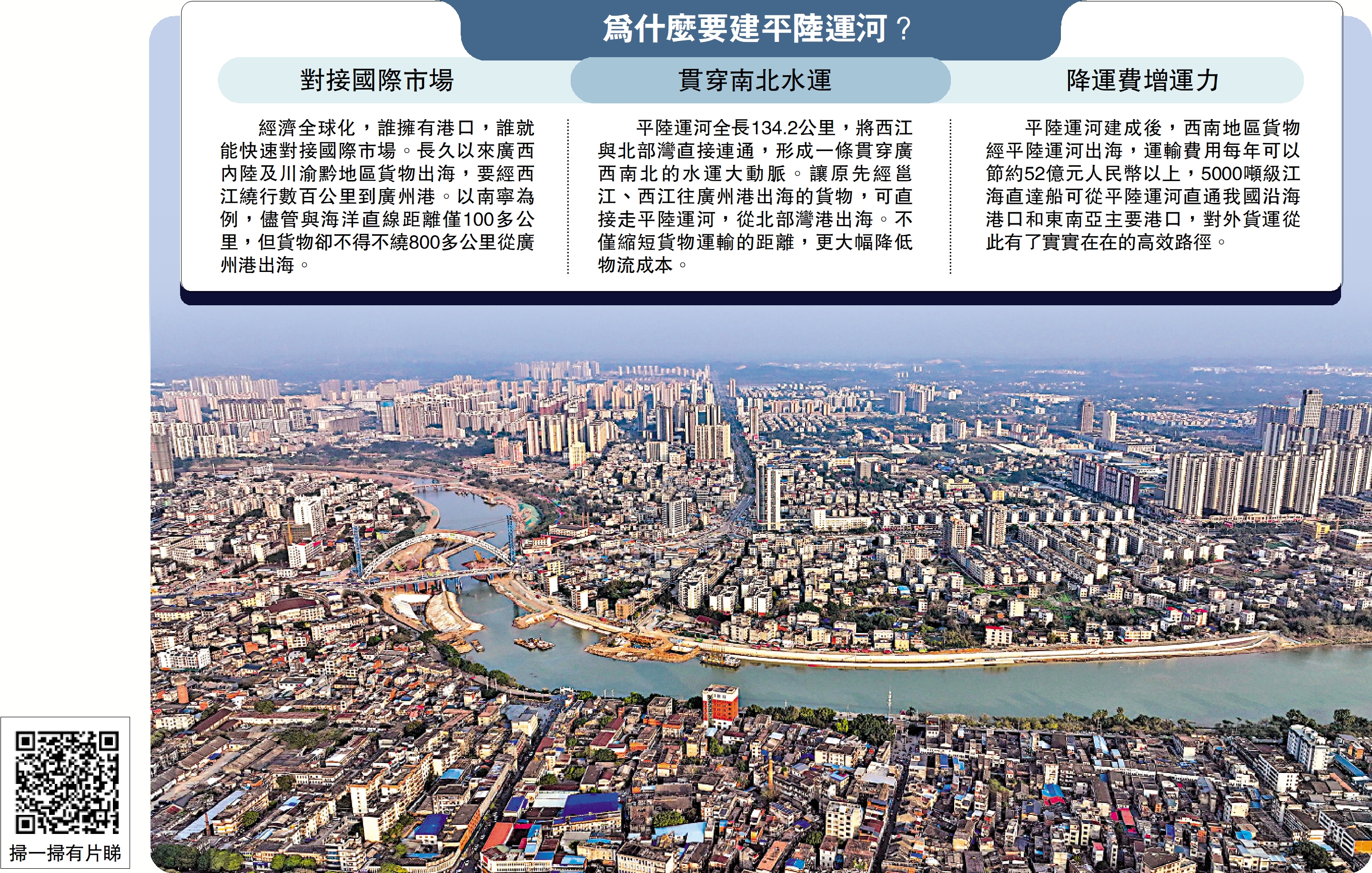 周文龍指出,平陸運河的價值在於讓廣西打造「通道+產業+政策」的立體優勢。據悉,西南地區貨物經平陸運河出海,較經廣州港出海縮短內河航程560公里以上。雲南的有色金屬、四川的電子產品,可通過運河快速直抵東盟,契合東盟市場「小單快反」的需求,讓廣西在西部陸海新通道中從「節點」變成「樞紐」。在進口方面,來自東盟的原材料可經運河運至廣西加工後再返銷東盟或輻射西南,形成「東盟─廣西─西南」的閉環產業鏈。比如東南亞各國的水果,過去大多運到珠三角加工,現在可直接靠泊北部灣港,通過運河運至南寧製成零食後再銷往全球,整個產業鏈在廣西完成「增值」。
