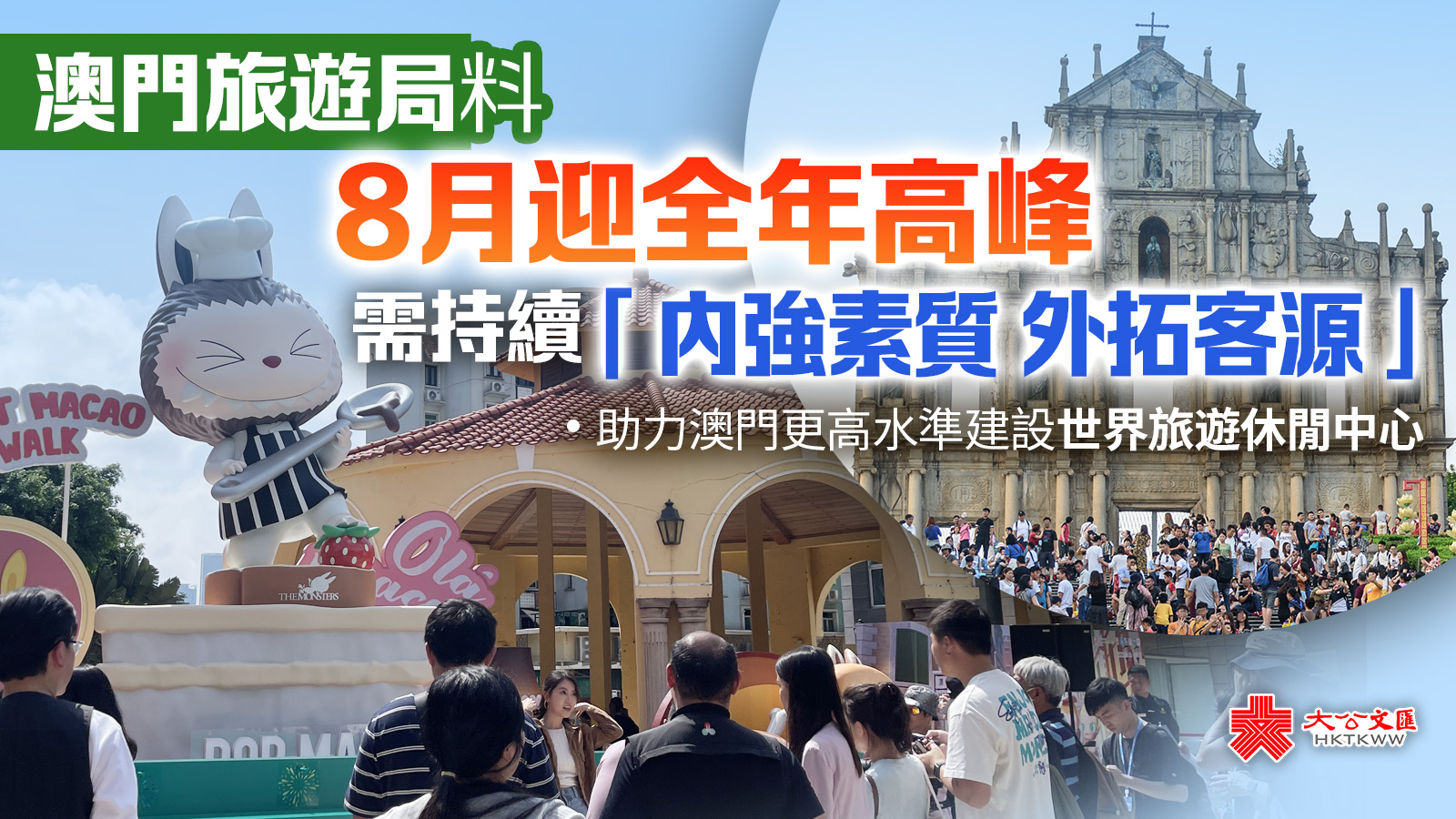 (大公文匯網 記者 鍾佩欣、王祥康)在中央惠澳政策持續支持及特區政府施政下,澳門旅遊業穩健復甦,截至7月8日,訪澳旅客突破2000萬人次,較去年提前26天達到紀錄,日均達10.6萬人次。澳門旅遊局局長文綺華預計澳門8月將迎來全年旅客高峰期,呼籲旅遊業界做好準備迎客。