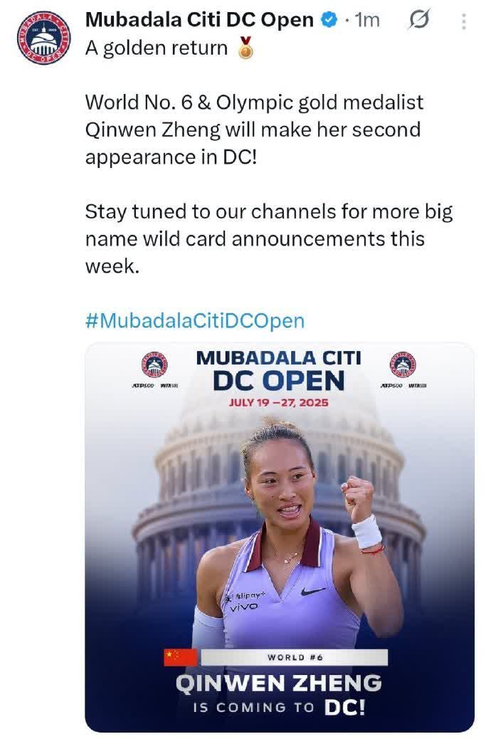 從7月21日開始的WTA500華盛頓站將作為鄭欽文北美賽季的首戰,目前女單參賽陣容包括:佩古拉、巴多薩、納瓦羅、萊巴金娜、施耐德、阿尼西莫娃、亞歷山大洛娃、陶森、弗萊赫、科斯秋克、里內特、肯寧、費爾南德斯、克魯格、凱斯勒、普汀塞娃、斯特恩斯、拉杜卡努、卡林斯卡婭、大阪直美。