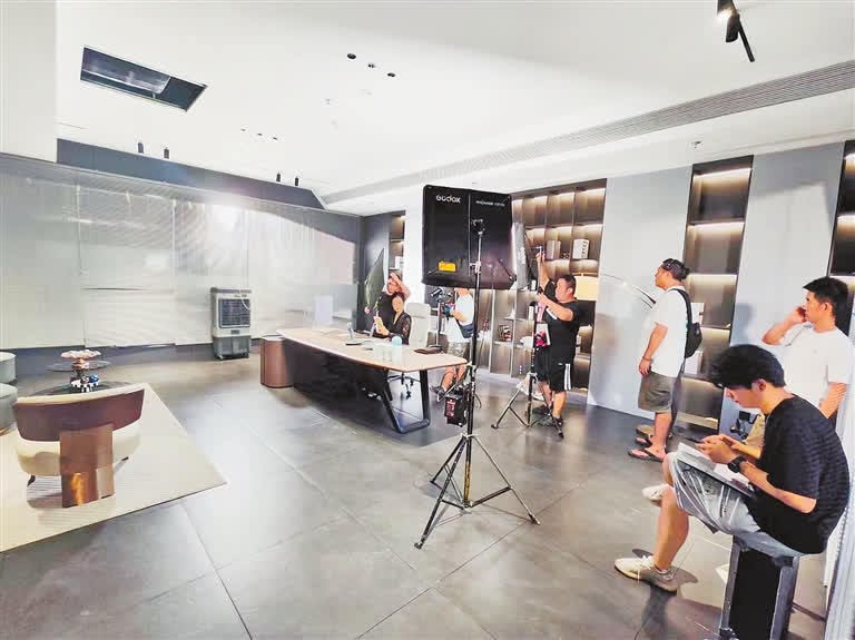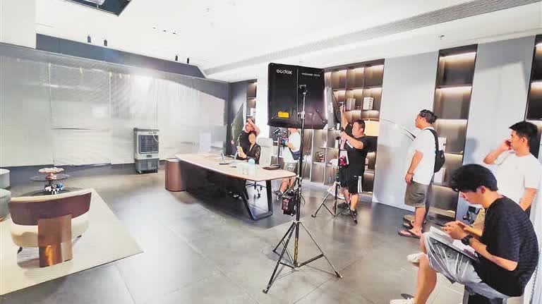攝影棚內,導演的指令一聲接着一聲:「切畫面,換女主特寫」「OK,準備下一個場景」……聚美基地相關負責人介紹,一部短劇從開機到殺青,短則2至3天,長則5至7天,高效的工作節奏彰顯出微短劇行業的旺盛活力。