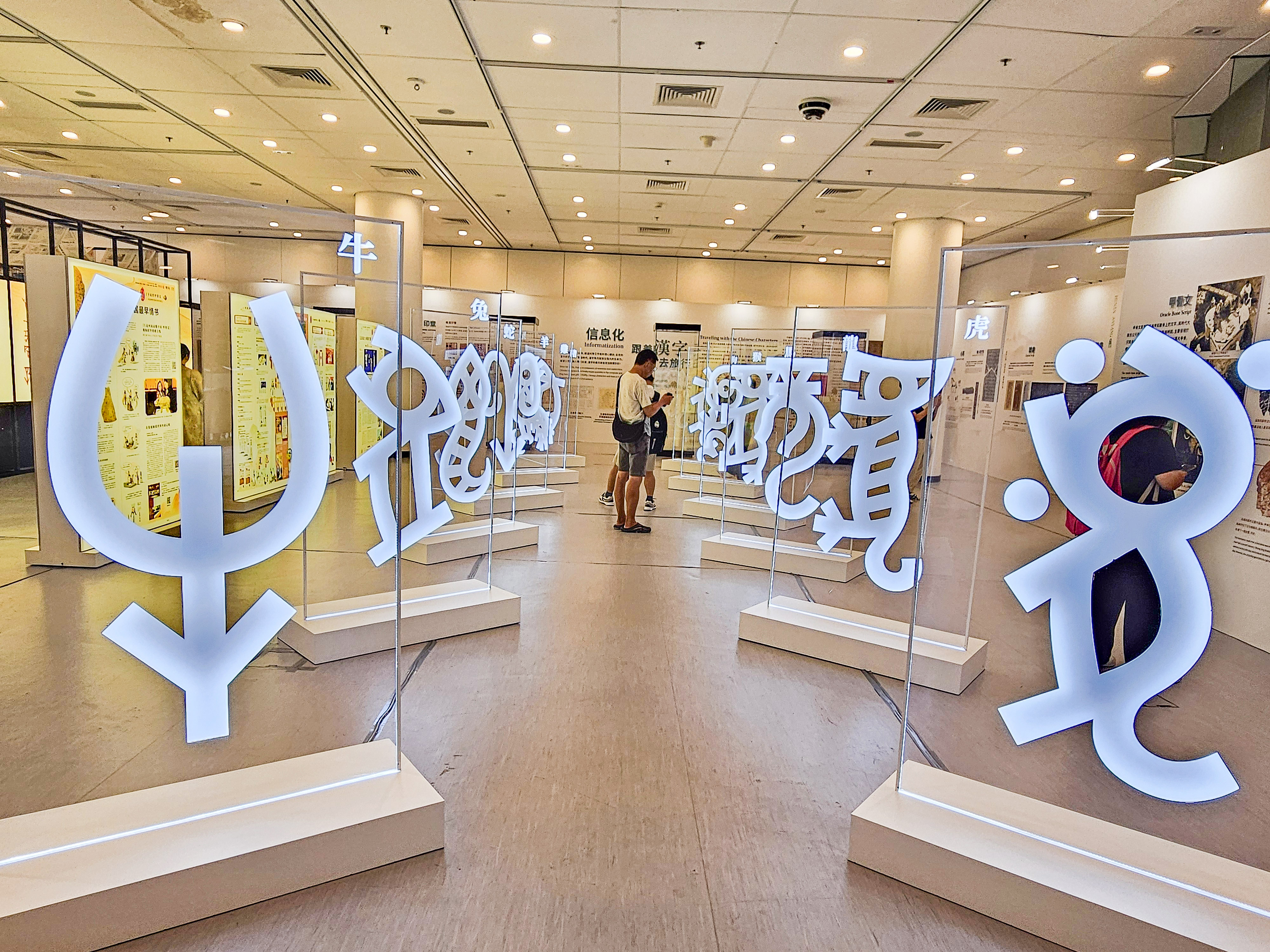 展覽分為三大區域,「從甲骨文到現代漢字」展示5件非遺技藝復刻的甲骨文物,並設「甲骨文百家姓」互動區;「甲骨文藝術展」展示清華大學陳楠教授團隊創作《甲骨文·動物世界》《甲骨文·宇宙》等數字藝術作品,融合工業風與傳統象形文字;「甲骨文XR科技展」則設置了XR電影,觀眾可虛擬參與商朝占卜、青銅器鑄造等場景,親手觸碰甲骨解鎖漢字演變。展覽期間將舉辦研討會、講座及導賞活動。