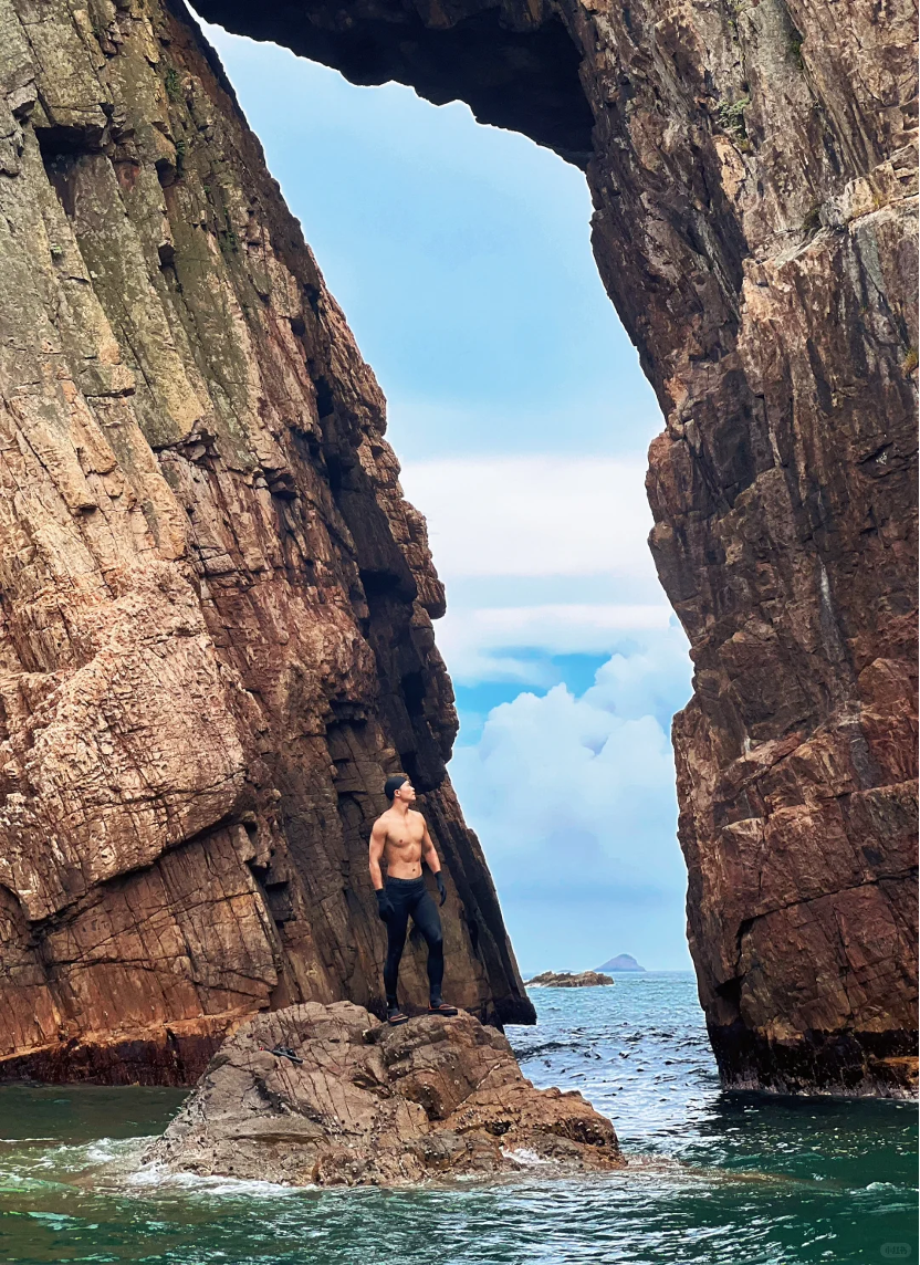 火石洲:穿越香港最高海蝕拱門「關刀洞」(因形似關公大刀得名)。