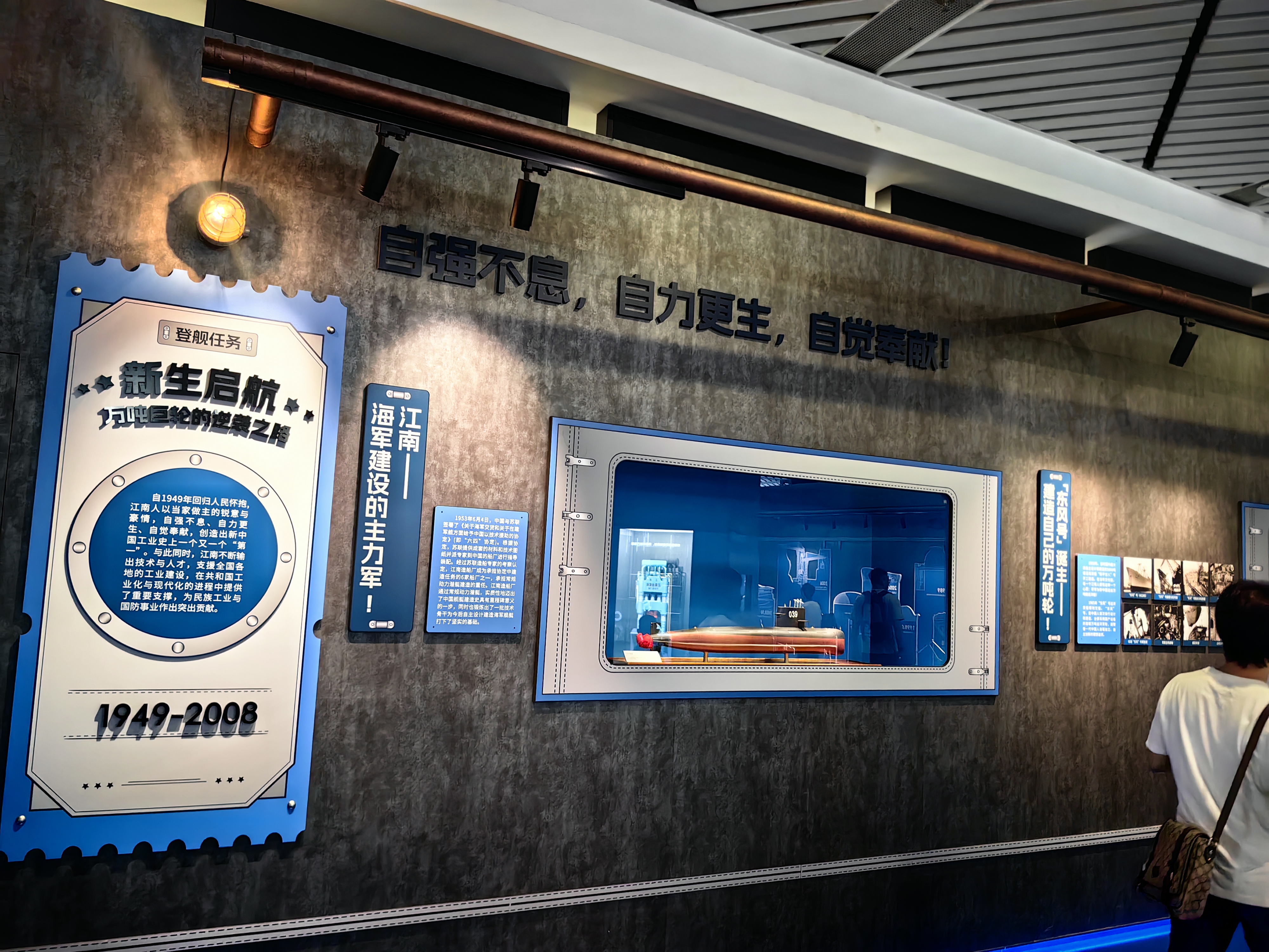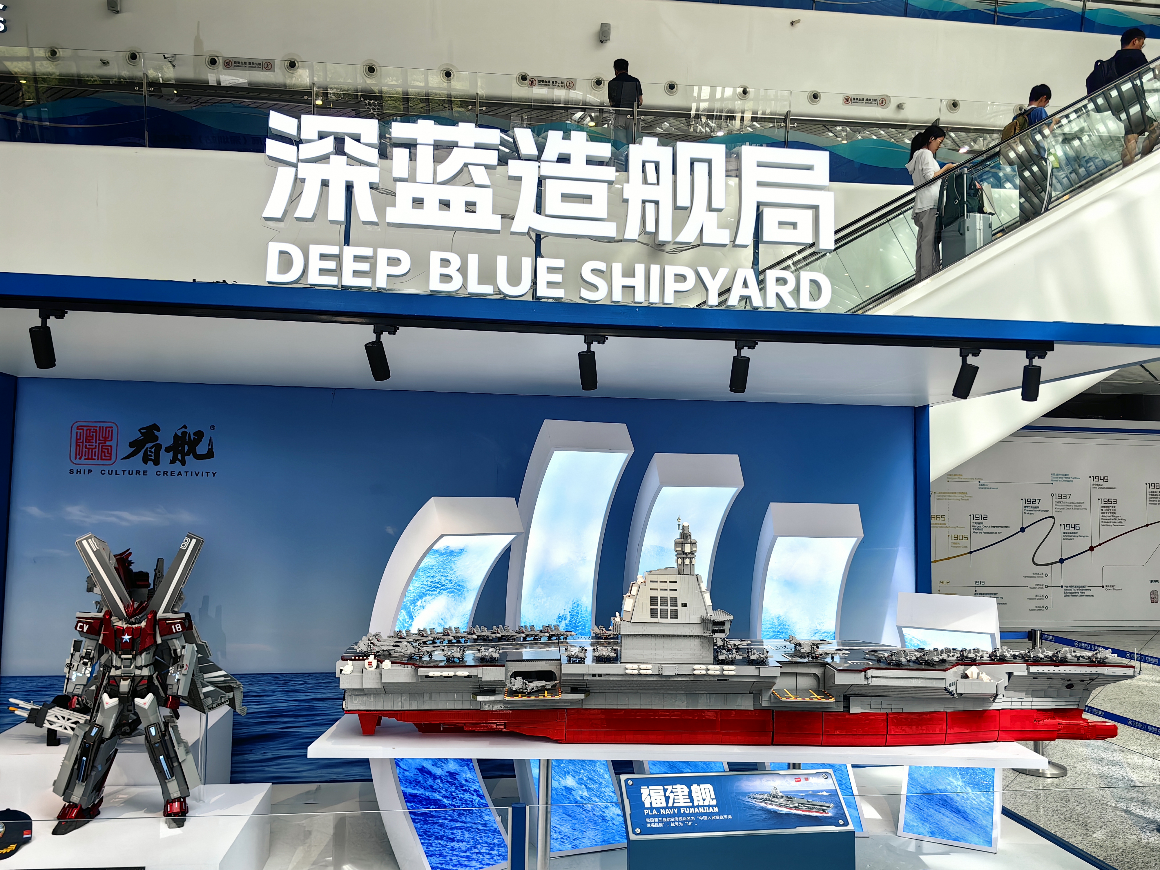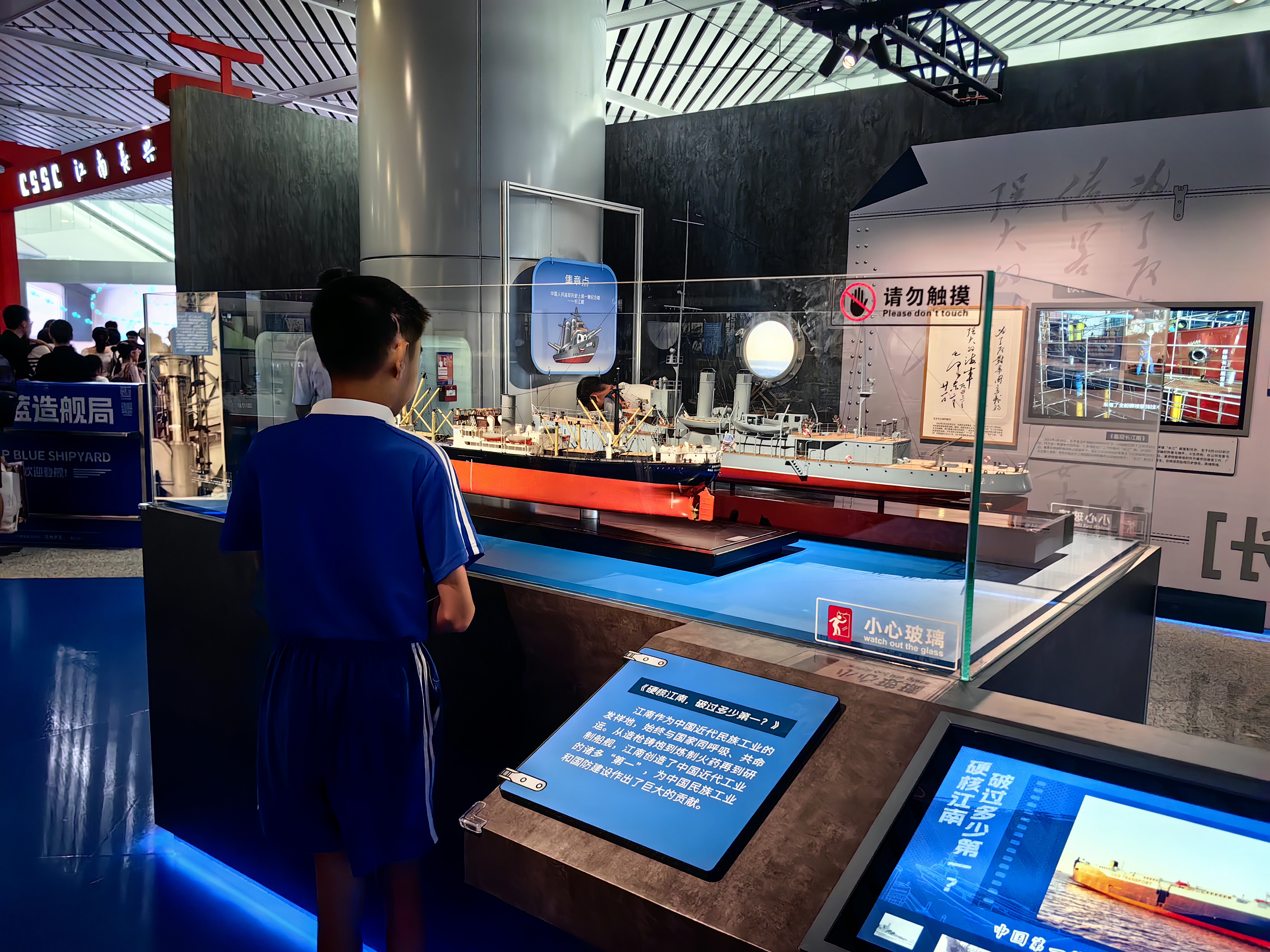 「看艦」巡展是深圳首次舉辦的大型艦船文化主題線下展覽,展覽以中國近代工業象徵——江南機器製造總局160年滄桑巨變為軸線,系統梳理了中國船舶工業篳路藍縷的奮鬥歷程:從洋務運動時期「師夷長技以制夷」的艱難起步,到抗戰烽火中船廠工人以血肉之軀搶修戰艦、保家衛國;從新中國成立後萬噸輪下水、萬噸水壓機轟鳴,宣告建設強大海軍的雄心壯志,到21世紀以自主創新為引擎,實現從「造船大國」向「造船強國」的歷史性跨越。這段濃縮的百年征程,是中華民族自強不息、科技興國偉大實踐的生動教材。