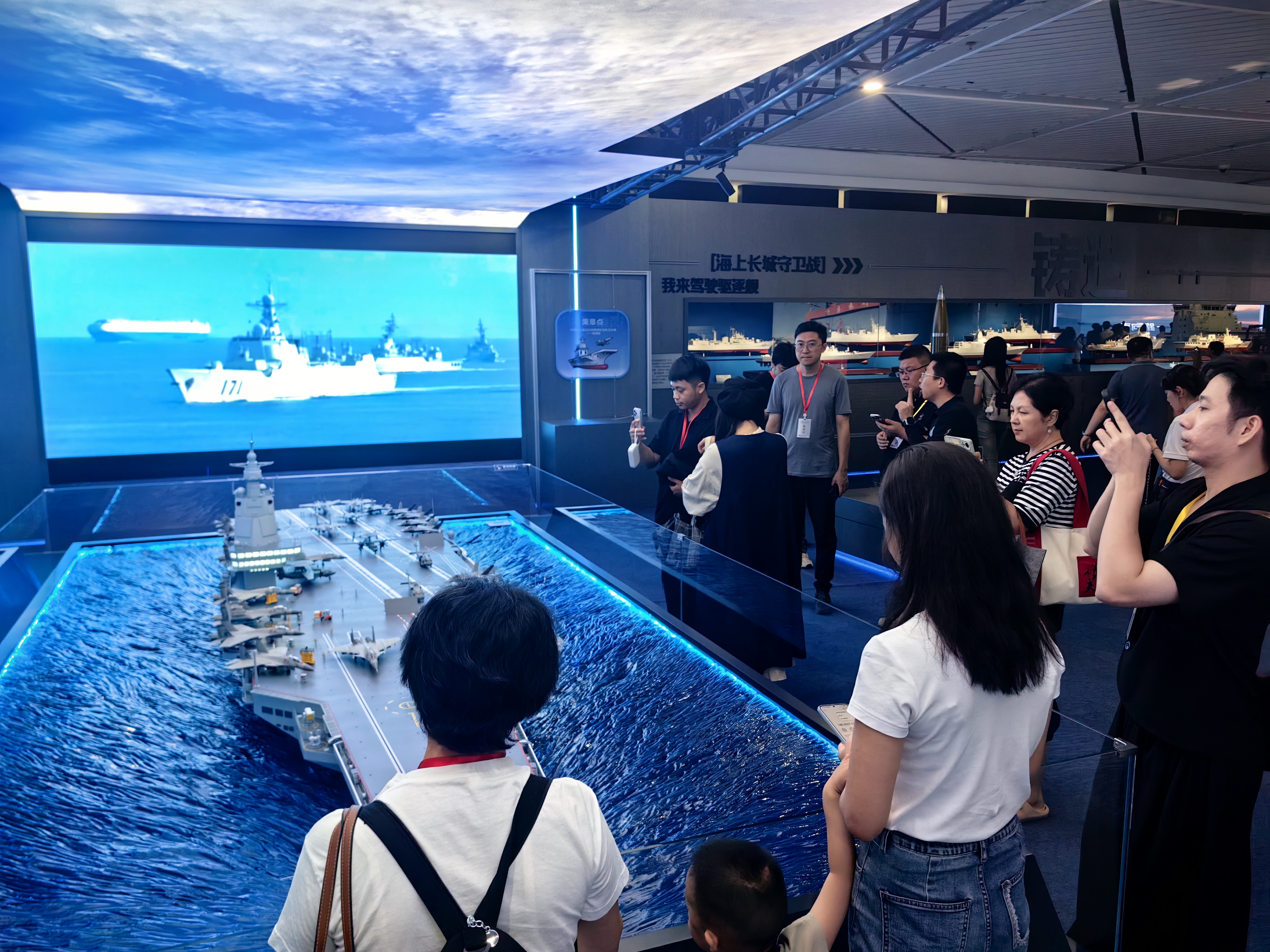 展覽精心設置了多項前沿互動環節:在「AI未來戰艦工坊」,觀眾可利用智能繪圖工具自由揮灑創意,設計心中未來戰艦,人工智能即時生成可視化藍圖,點燃科技創新的火花;趣味軍艦模塊拆裝互動遊戲,讓參與者動手理解現代艦船的精密構造,深化國防科技認知;「航母指揮官體驗」讓觀眾化身甲板指揮官,在模擬環境中下達指令,感受駕馭海上移動國土的責任與榮光;豐富的艦船主題文創產品,巧妙融合科技、歷史與藝術,使參觀體驗得以延伸,讓海洋強國夢想融入日常生活。