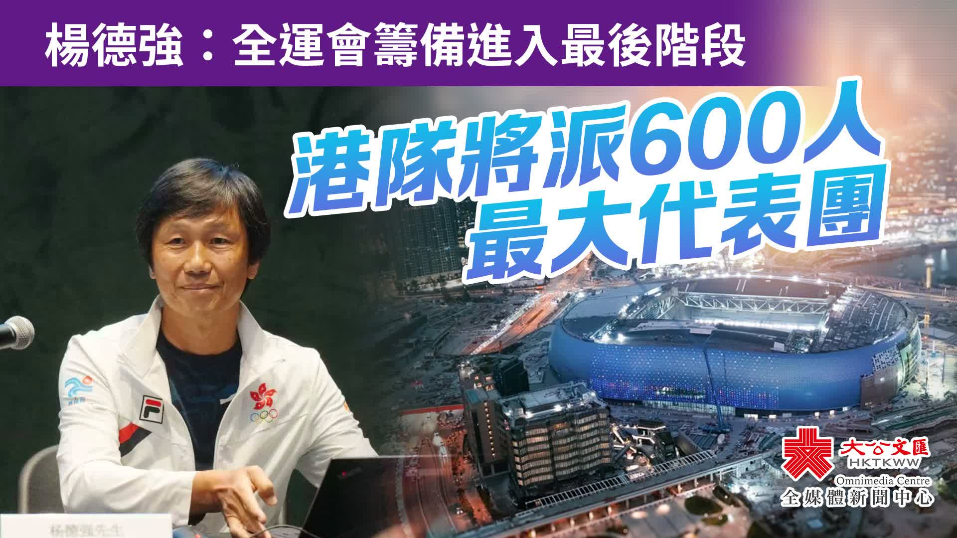 楊德強又說,今年全運會港隊將派出規模最大的代表團,初步會有超過600名運動員出戰20多個項目。他提到,香港承辦的8個項目,例如劍擊、場地單車、七人欖球等都有優勢,加上主場之利,希望能爭取到好成績。