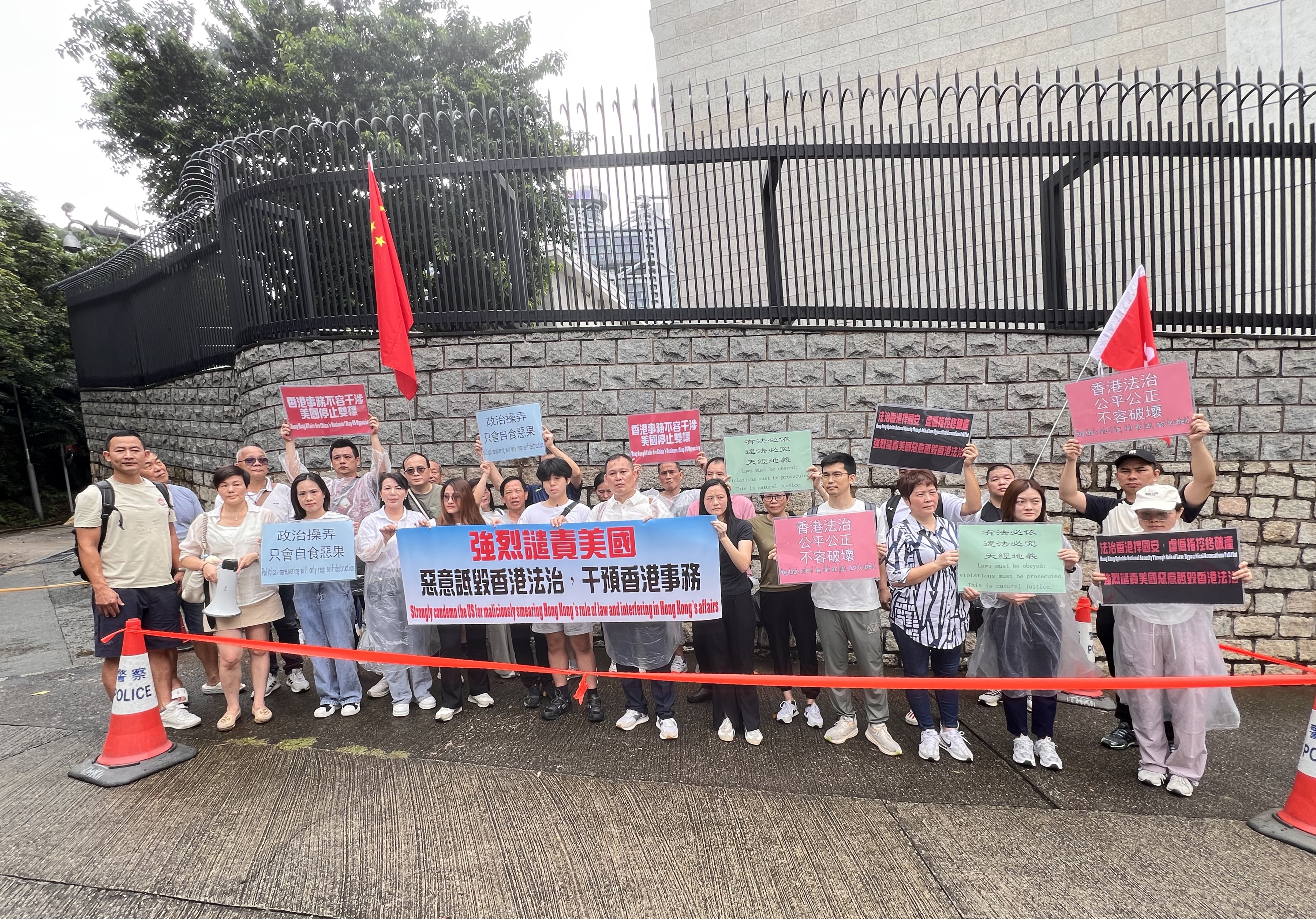 大公文匯全媒體報道,針對美國白宮宣布再次延長所謂「針對香港局勢宣布的國家緊急狀態」,無理干涉中國內政和香港事務,香港多個市民團體今日(12日)到美國駐港總領事館外抗議,強烈譴責美國干預香港事務。