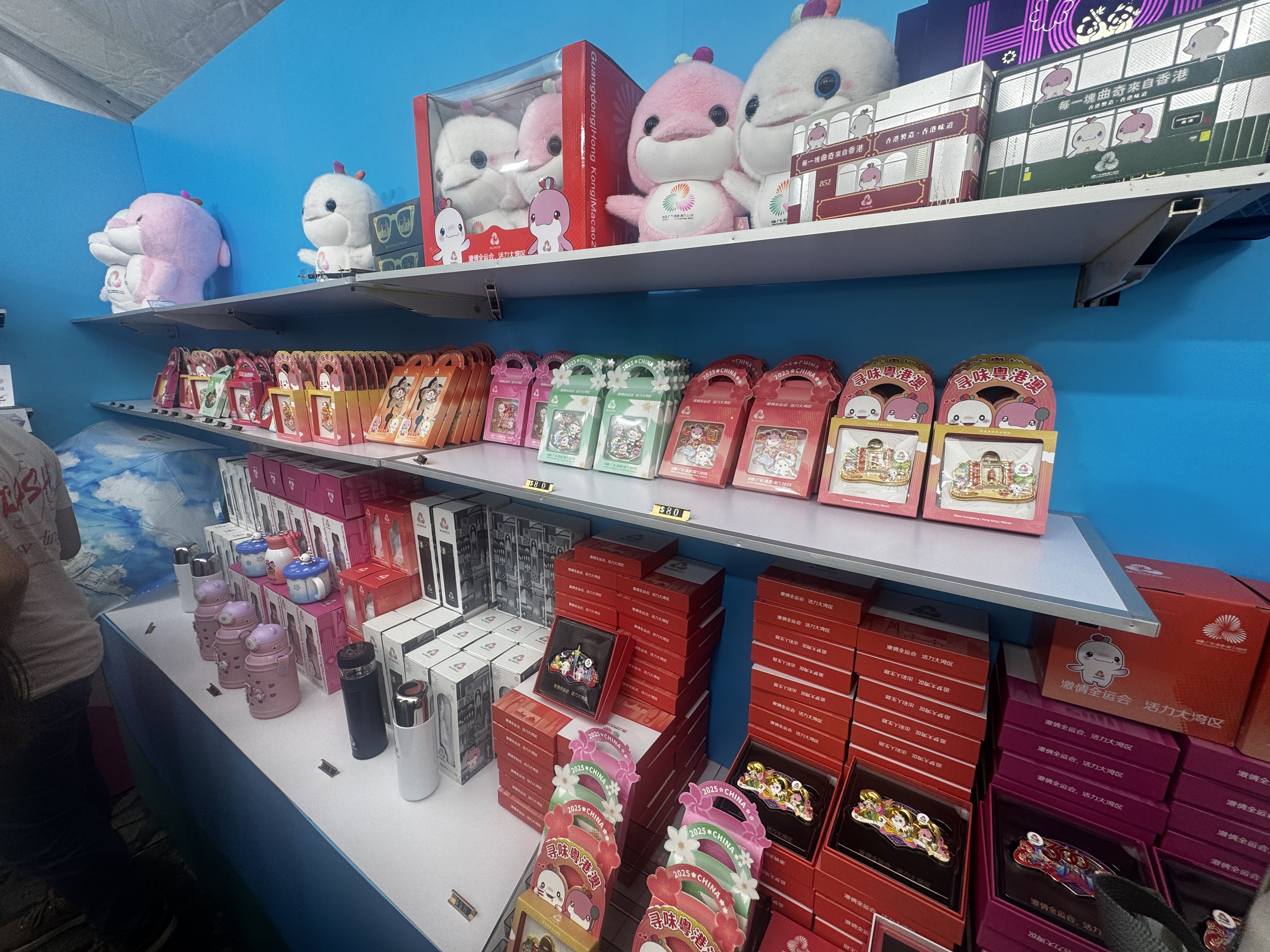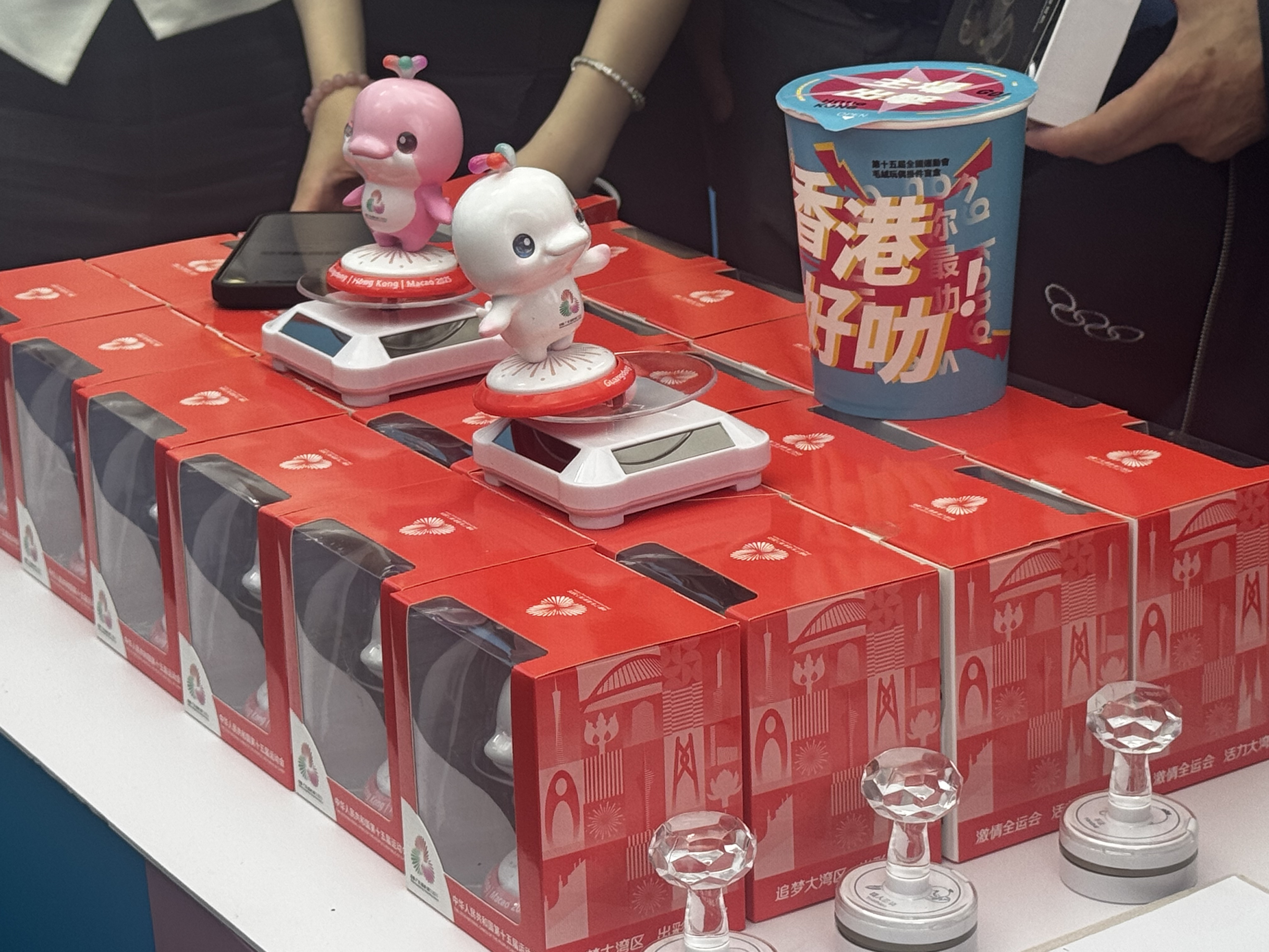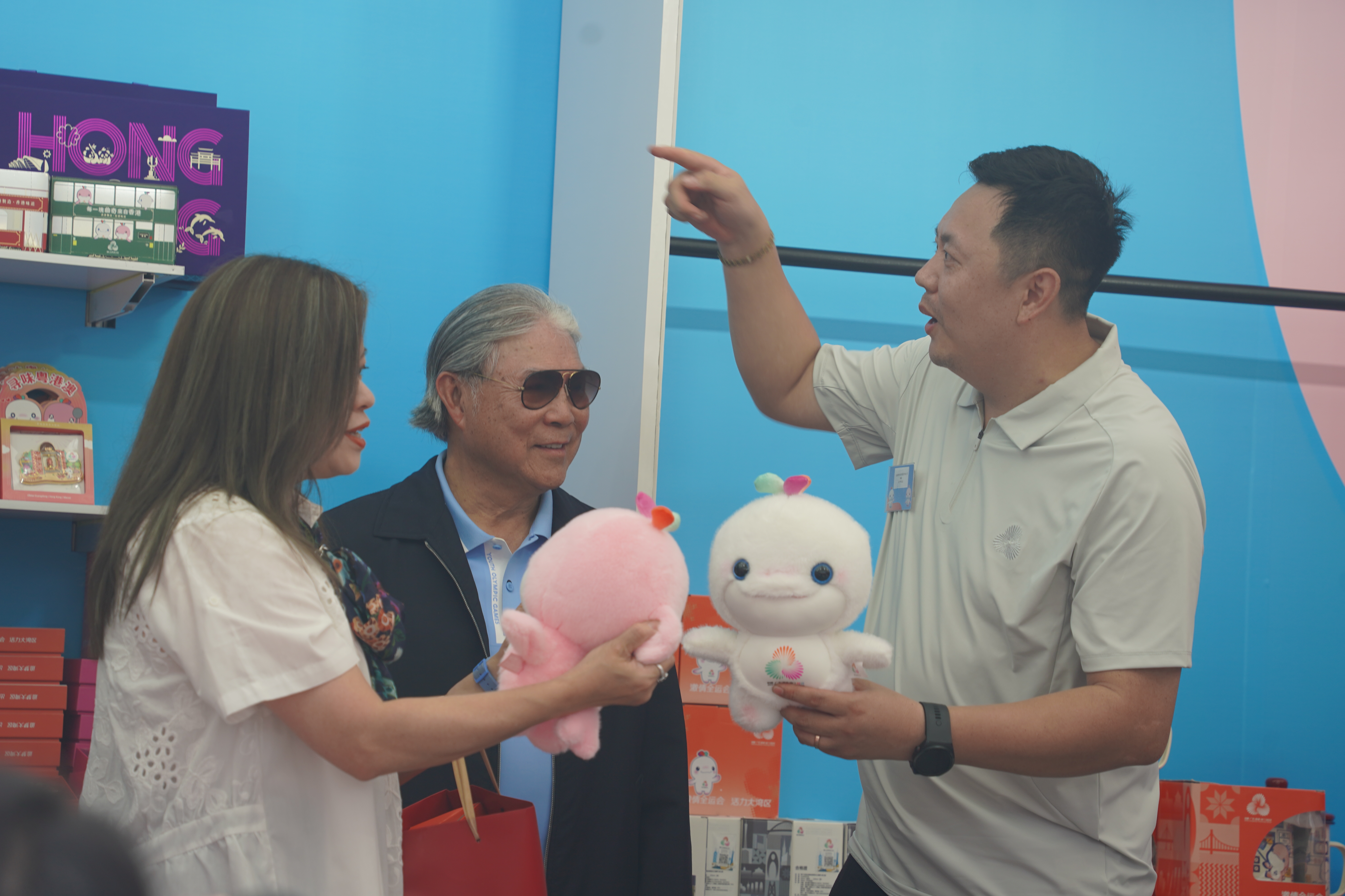 首批三個官方零售店分別位於啟德體育園零售館、西九高鐵站及灣仔入境事務大樓,店內出售多項與全運會有關的紀念品,包括官方吉祥物「喜洋洋」及「樂融融」毛絨玩具套裝、徽章擺件、磁石貼、雨傘、保溫瓶等。商品種類豐富,價格親民,滿足不同消費者的需求,市民可於下周一(14日)起入場選購。羅淑佩更身體力行,在現場踴躍購買,她表示,「買了幾百塊的東西,感覺很值得。」