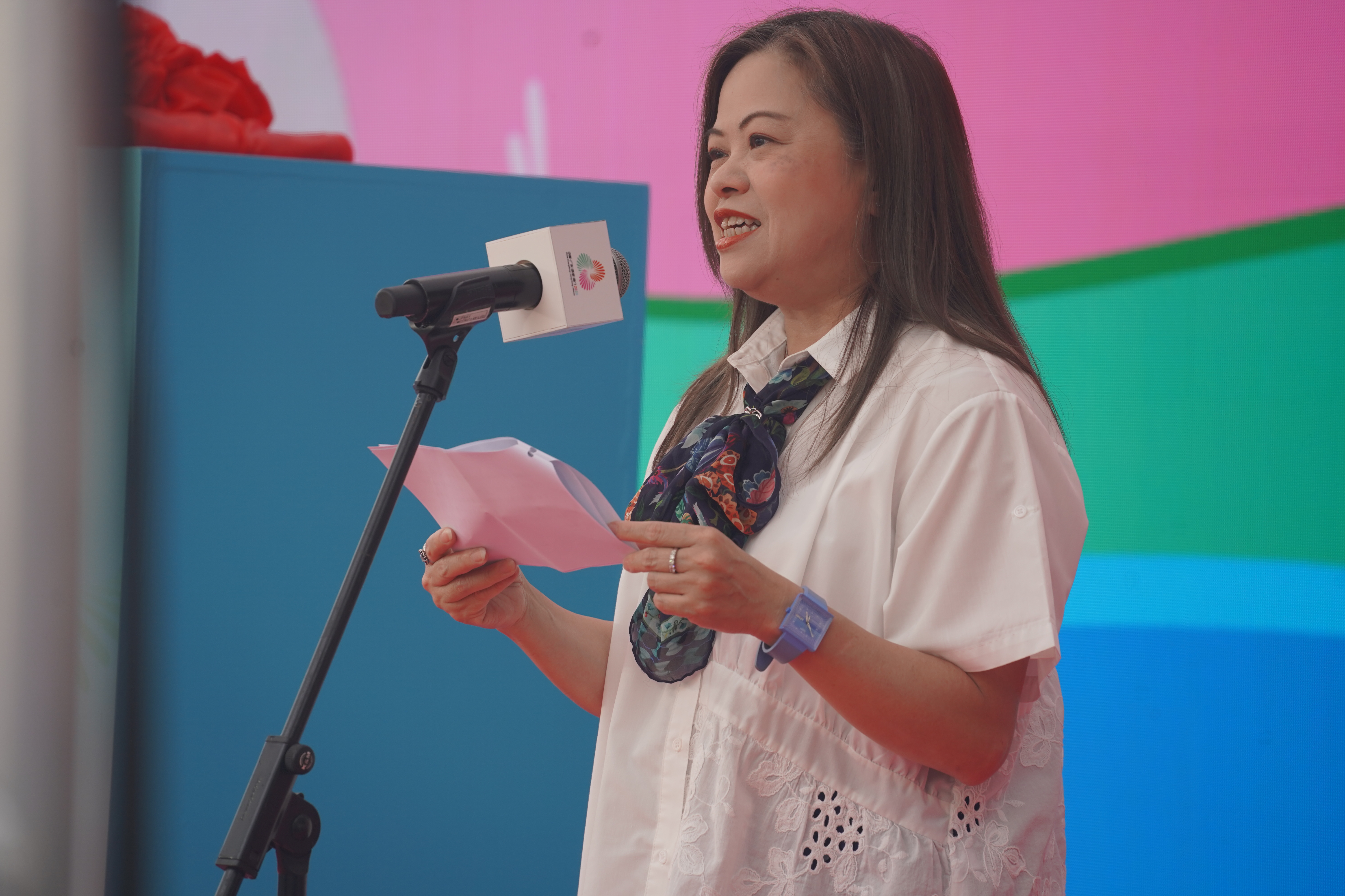 文化體育及旅遊局局長羅淑佩出席發布會並致辭。她表示,全運會香港賽區各項籌備工作已進行得如火如荼。特區政府自2023年起一直努力不懈,力求推動全民參與全運會,讓市民及訪港遊客從各方面感受體育盛事的魅力及熱情。在貿發局及品牌發展局支持下,成功甄選多間優秀企業設計及生產一系列別具香港特色的全運會特許商品。這些商品不僅承載全運會的精神,更融入維港景觀、城市地標、本地美食等元素,展現香港賽區獨特的魅力。羅淑佩還透露,未來將開設更多零售店,方便市民和旅客選購。
