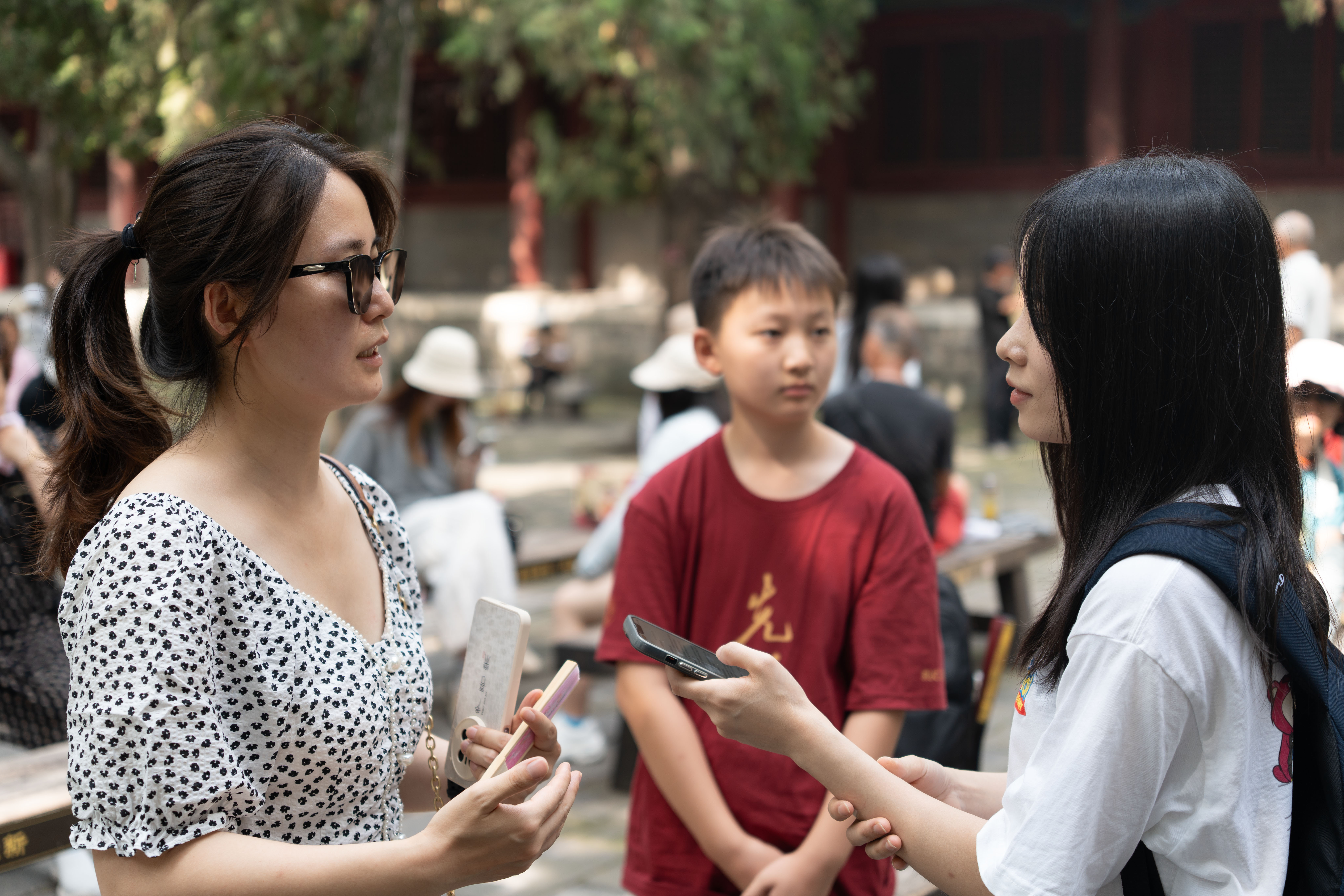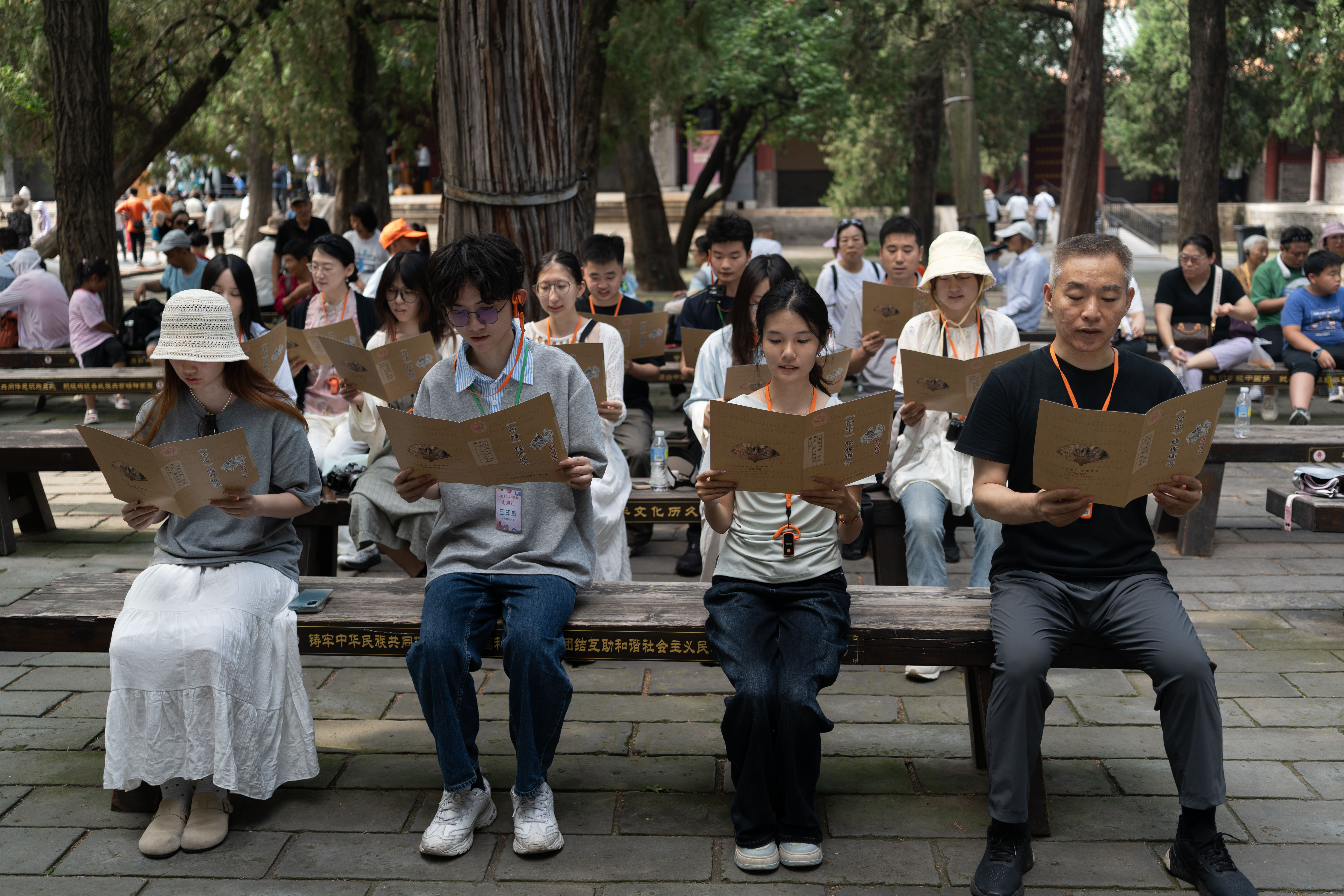 「子曰:『學而時習之,不亦說乎?有朋自遠方來,不亦樂乎?』」在相傳為孔子講學之地的孔廟杏壇,香港傳媒學子一行齊聲誦讀《論語》選段,朗朗書聲回蕩在古老的孔廟裏。「我們語言或許有別,但文化內核相同。這種跨越方言的文化共鳴,讓中華共同體的感受更加強烈。作為中文教育專業的準教師,能在孔子授業的場所,以方言傳遞經典文化,也是對文化傳承的一種實踐。」來自香港教育大學的嚴鈺儀還用粵語教兩位內地同學誦讀《論語》。