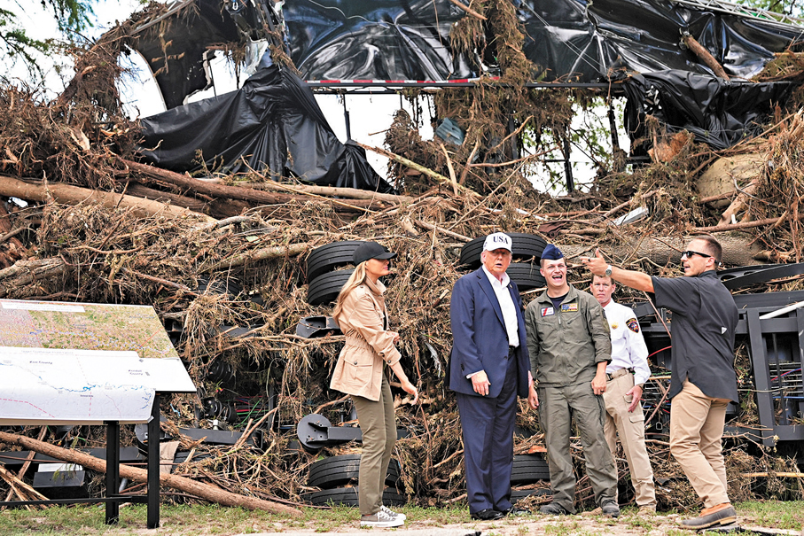 香港文匯報報道,美國得州本月4日暴雨引發的洪災,已造成至少129人死亡,仍有166人失蹤。總統特朗普上周五(7月11日)相隔一周後到災區視察時,強硬回應有關政府應對不力的批評,更斥責質疑預警問題的記者「邪惡」。