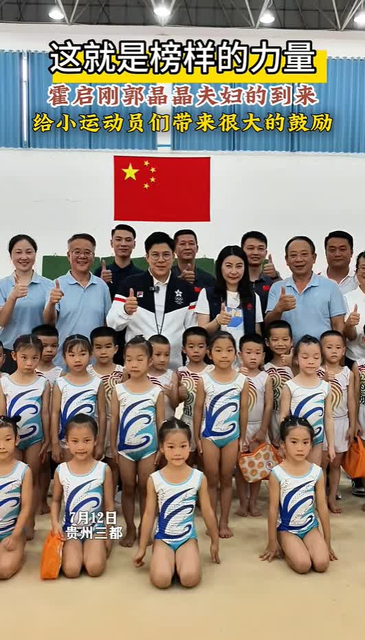 大公文匯網報道,7月12日,「跳水皇后」郭晶晶與其丈夫霍啟剛抵達黔南州三都水族自治縣,了解當地跳水人才基地相關情況。兩人到三都縣一所體校調研,並且看望了學校裏的跳水小將們。