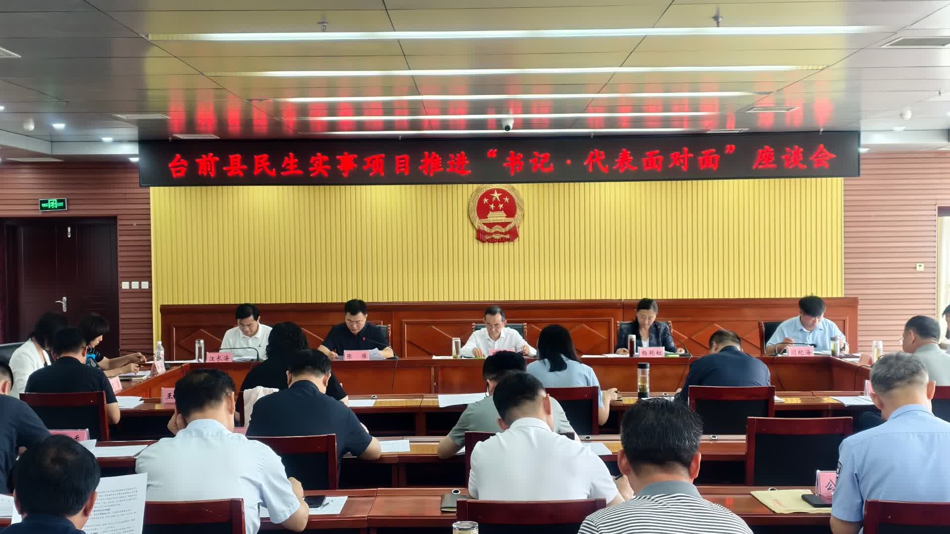(記者 劉蕊 實習生 張媛媛 河南報道)7月8日上午,台前縣人大常委會會議室,座無虛席,氣氛熱烈,一場別開生面的民生實事項目推進「書記・代表面對面」座談會正在進行。縣委書記孫慶偉、縣人大常委會主任楊艷虹等縣領導與6名縣人大代表、17個政府相關部門負責同志及各鄉鎮(街道)人大主席(工委主任)齊聚一堂,圍繞老城基礎設施更新、民營經濟發展、道路交通、高標準農田建設、老年助餐服務、養老機構建設等民生實事項目辦理推進情況,展開熱烈討論。