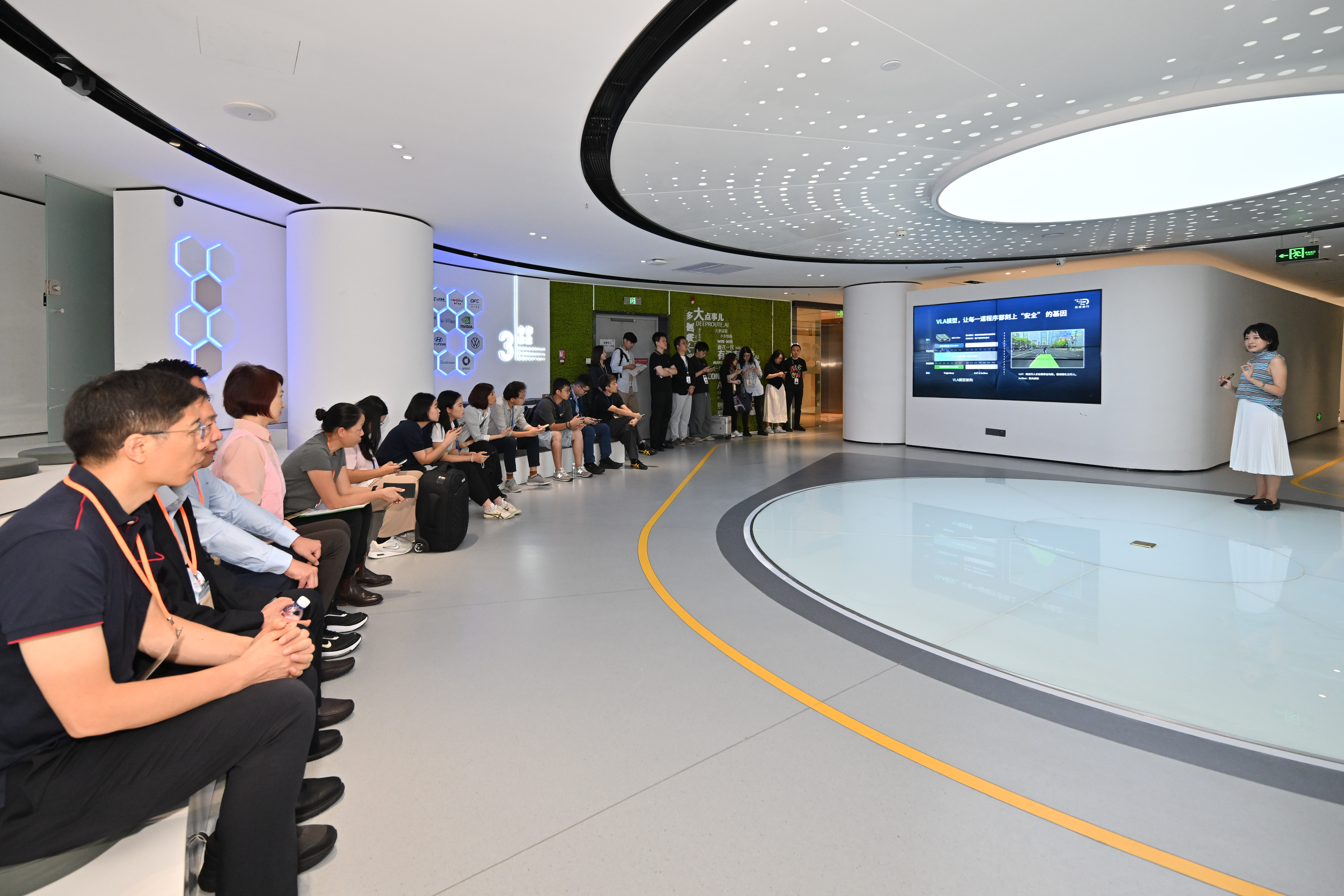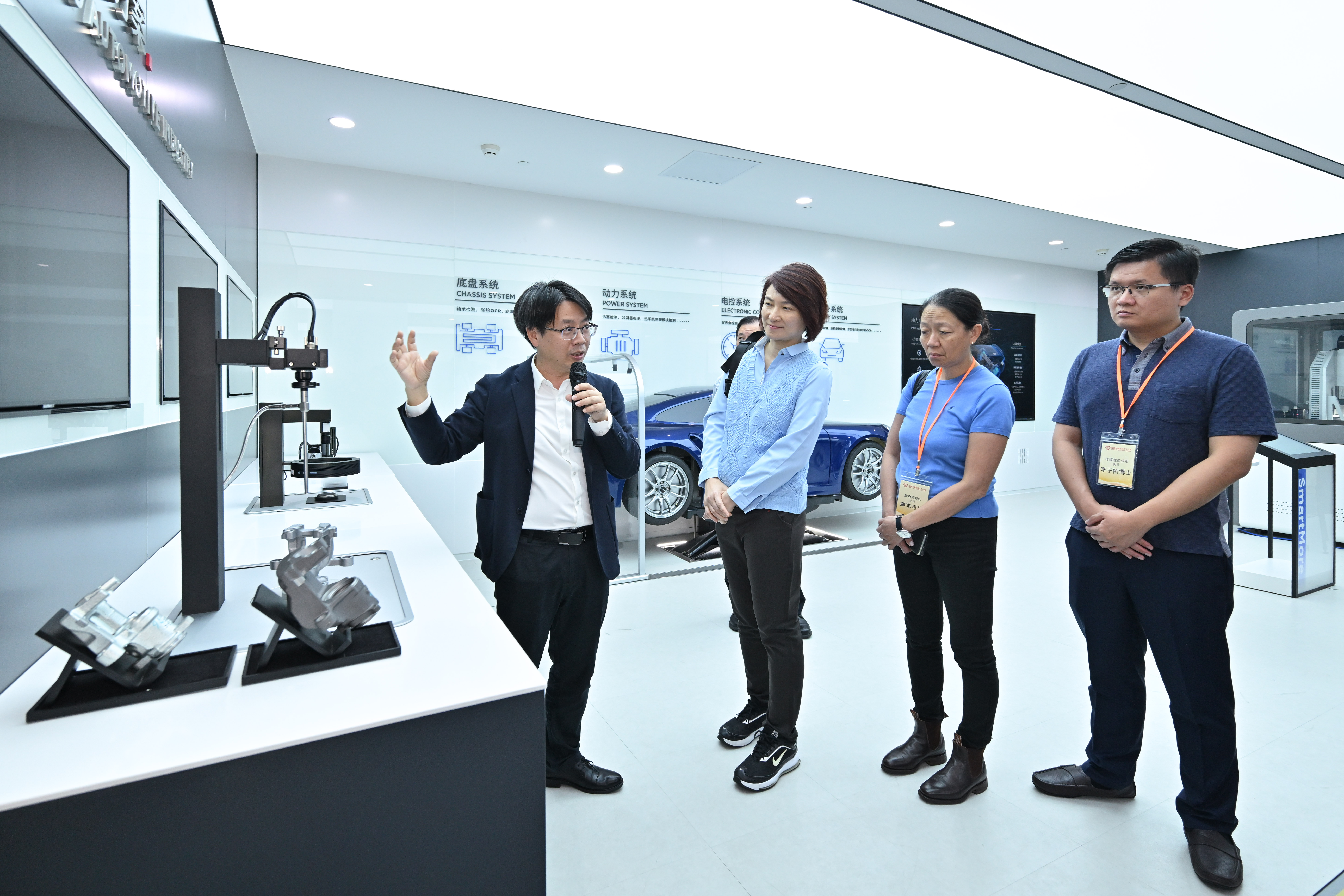 交流團昨日(12日)到訪深圳元戎啟行科技有限公司,體驗智慧駕駛技術的應用,其後前往中建海龍建築科技研究院,了解應用於香港啟德「簡約公屋」的「組裝合成」組件生產運作,並參觀比亞迪股份有限公司位於深圳的總部。