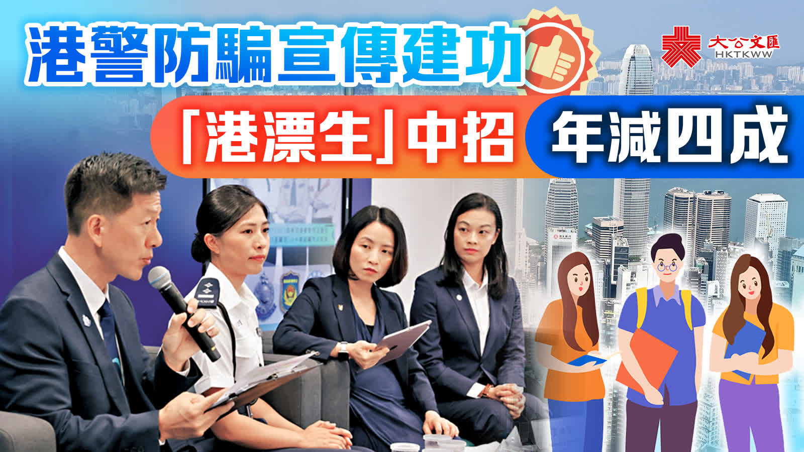 另外,香港警方反詐騙協調中心與國家教育部留學服務中心合作,上月10日在瀋陽市舉辦首場線上線下分享會,向超過1萬名有意來港升學的學生及其家長宣講防騙知識。另外,會經本地各大專院校及內地留學服務中心,向來港升學的學生及其家長發出由香港警務處處長周一鳴簽署的信函,向「港漂」學生和家長提供防騙貼士及獲取支援的方式(見另稿)。