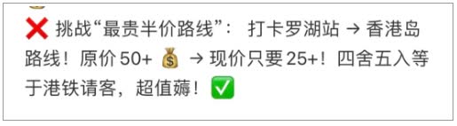 最能薅羊毛的路線,則是從香港島到羅湖,立省25+。為了薅這個羊毛,高低得跑一趟↓
