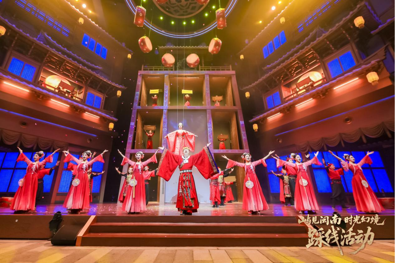 本次活動以「穿越四朝閩南,一步千年幻境」為體驗主線,為嘉賓們鋪就了一條串聯古今的文化漫遊之路。從訴說南洋往事的「南島謐語」,到光影交織如夢境的「海底繁花」;從「鳳凰浮島」的靈動意象,到「時光小徑」的歲月沉澱……當嘉賓們身着閩南傳統服飾穿行於「千燈巷」「十洲集」等特色場景時,彷彿瞬間穿越千年。「這裏用現代語言重構了閩南文化DNA,為開發研學課程、文化主題線路提供了鮮活素材。」現場文旅從業者的讚嘆,道出了此次踩線活動的核心價值。