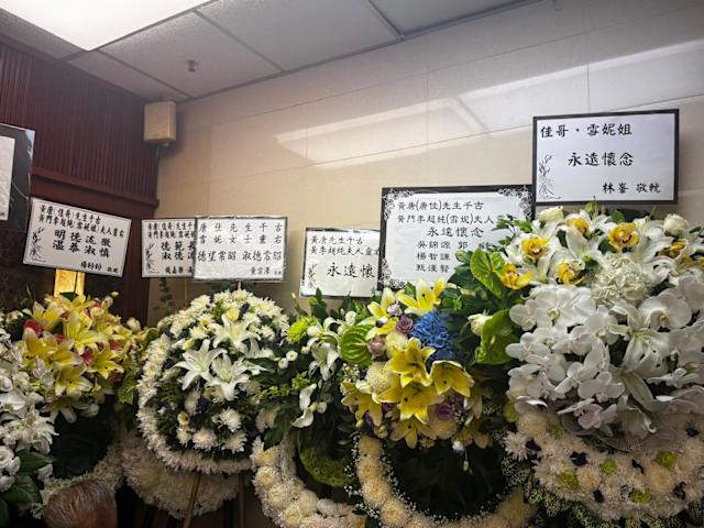 到場致祭包括汪明荃羅家英夫婦、姜大衛李琳琳夫婦、黎耀祥、錢嘉樂、黃宗澤等。又有逾百花牌擺滿靈堂內外,由狄龍父子、李修賢、劉偉強、杜琪峯、劉青雲郭藹明夫婦、羅嘉良夫婦、元華夫婦、邵美琪、吳卓羲、胡杏兒、陳展鵬夫婦及電視廣播有限公司等送來。