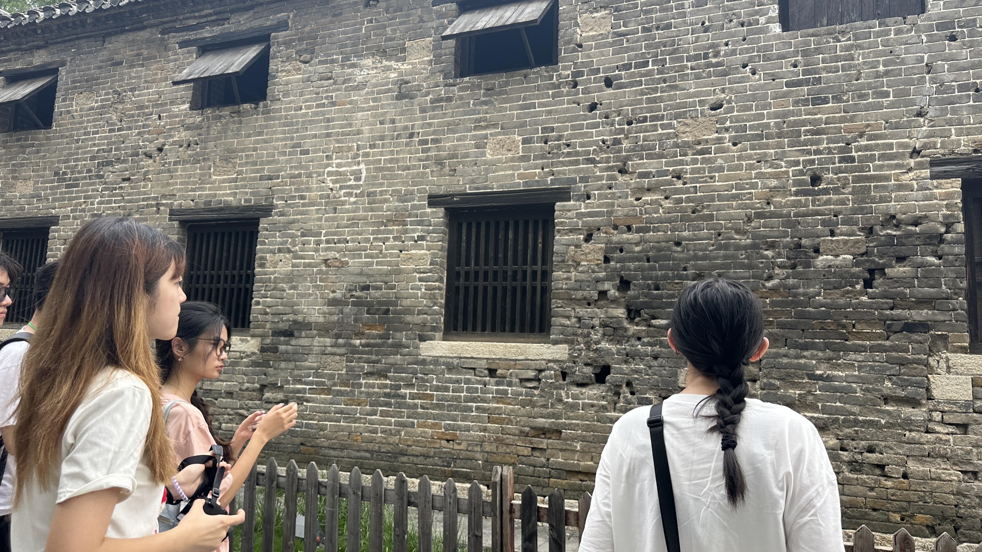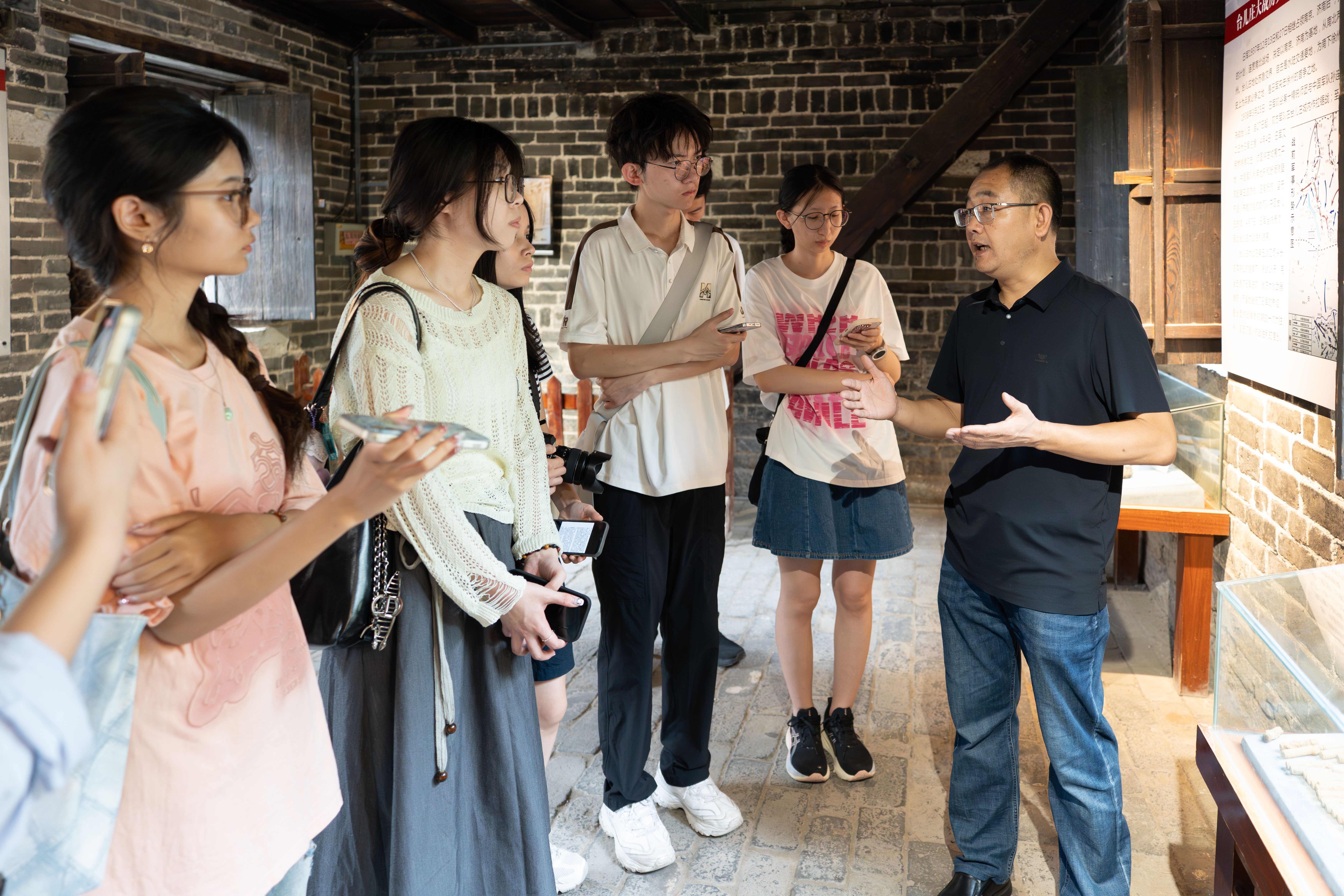 在台兒莊古城,傳媒學子穿行在石板街道,感受歷史與現代的交融。運河畔商舖林立、遊人如織的繁華景象,與再現當年激戰的雕塑形成鮮明對比。「台兒莊古城在商業運營與歷史遺蹟保護之間實現了很好的平衡,許多歷史遺蹟點位都得到了妥善保護。」來自香港城市大學的黃逸飛如是說。