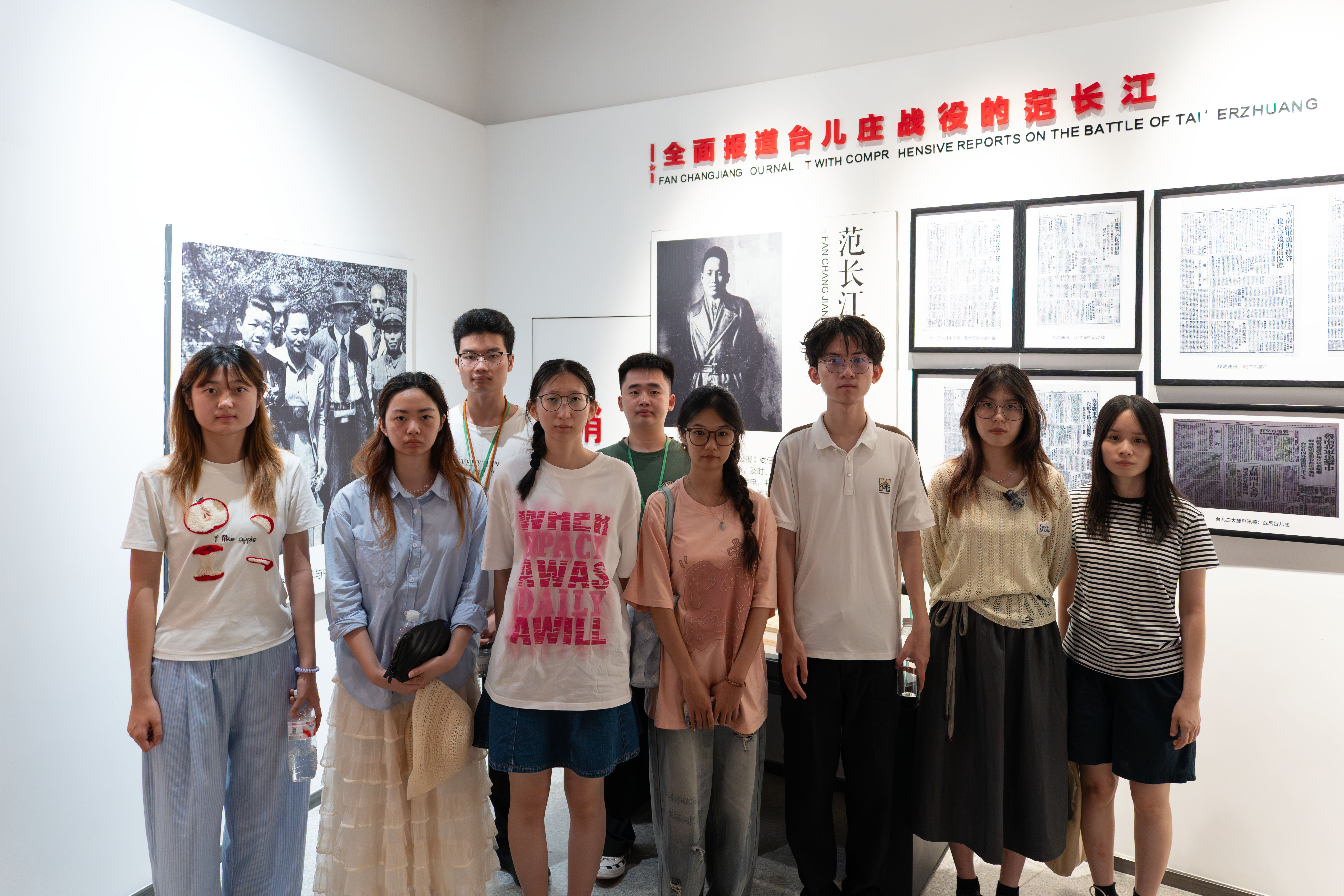 台兒莊大戰紀念館的戰地記者館,這是內地唯一一個以戰地記者為主題的展館,收藏了范長江、陸詒、曹聚仁等80餘位國內外戰地記者在台兒莊大戰期間的圖文報道和影像資料,目前有1000多幅圖片資料和100多件文物。他們用另一種「武器」,向世界傳遞了中國抗戰的真實情況。范長江深入最前線,在槍林彈雨中發回大量及時準確的新聞專電,並採寫了《川軍在山東前線》、《慰問台兒莊》等有深度的戰地通訊。聆聽范長江的故事、閱讀范長江的文章,嚴鈺儀感到心潮澎湃,更深刻體會到「鐵肩擔道義」永遠在路上的范長江精神。