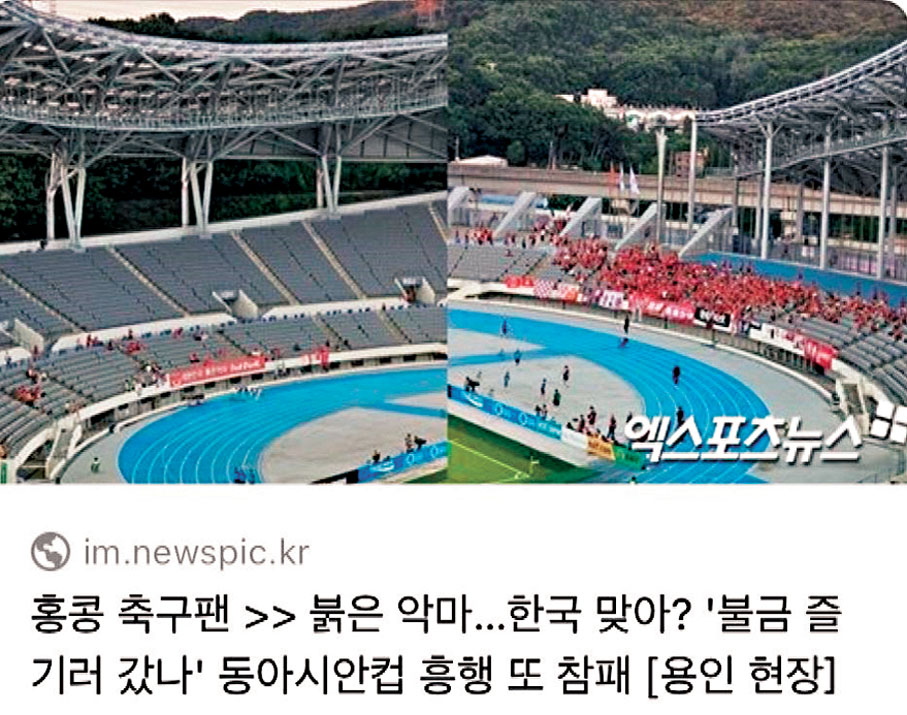 上月,港足首度於新主場啟德出戰,以1:0擊敗國際足協排名更高的印度,42,570名觀眾見證壯舉,打破了香港足球代表隊的入場紀錄,載入港足史冊。勝出這場亞洲盃外圍賽,除了球員及團隊的付出,高歌吶喊的球迷亦是港足全取3分的功臣。這次東亞錦,由港足首戰對陣日本的百多名香港球迷,延展至硬撼東道主韓國隊的近千人,聚集在龍門後方的這片熱血紅海,甚至比分散各看台的主場球迷更具氣勢,「港足加油!」的呼喊聲震撼球場。