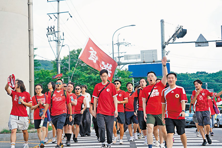 (香港文匯報記者 葉詩敏、王思佳)港足將於香港時間今午3時出戰東亞足球錦標賽(東亞錦)最後一場對國足的賽事,面對三大強隊,港足無疑大概率墊底,但賽事開幕以來「港足紅海」無論人數及聲勢均力壓對手,成為觀眾席上的最美風景。今場對國足比賽更會有逾千名球迷遠赴首爾以南約40公里的龍仁市支持港足,有球迷組織不惜工本製作打氣旗幟、橫額、紀念品,甚至為作客球迷安排巴士團,顛覆了向來「返工搵錢大過天」的港人形象。不論勝負強弱,對球隊依然力撐到底,這班「最強第12人」正向亞洲球壇展現一種名為「香港足球」的體育文化價值。