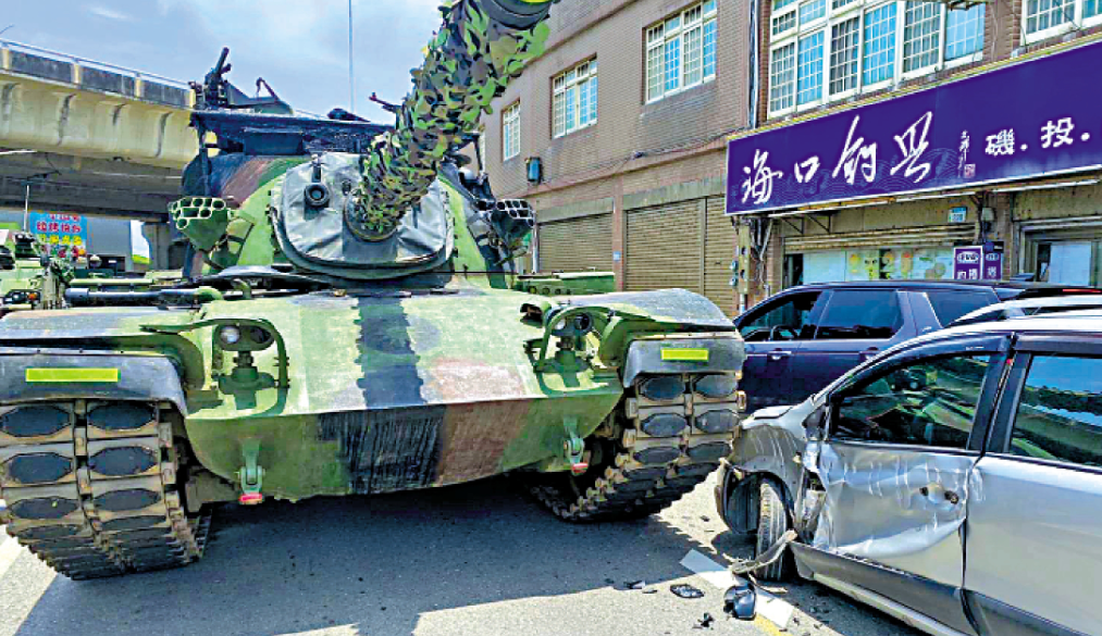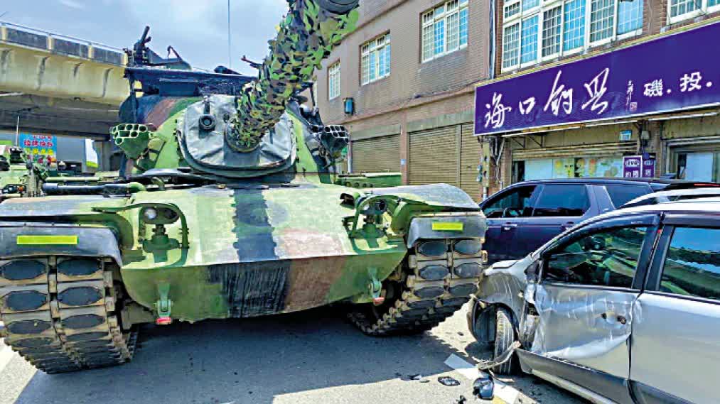 此前,台陸軍新竹542旅一輛參加「漢光演習」的M109A5自行火炮車,10日晚間行經桃園市新屋區時,因駕駛員不熟悉路況,未算準車輛寬度,在撞擊一輛停放在路邊的小貨車後,又連撞3輛小客車,所幸現場無人受傷。