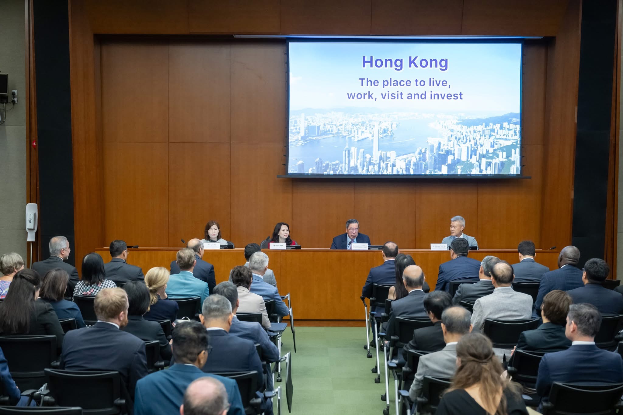 梁君彥強調,不會只滿足於眼前的成就,已藉今日交流酒會機會向各國領事重點分享香港在法律、經貿、教育、創科等領域的優勢,其中包括北部都會區的發展策略、香港成為國際法律仲裁中心的潛力、香港發展「國際專上教育樞紐」的政策、以及在完善規管的環境下推動金融科技(FinTech)、Web3技術、穩定幣發展等機遇。