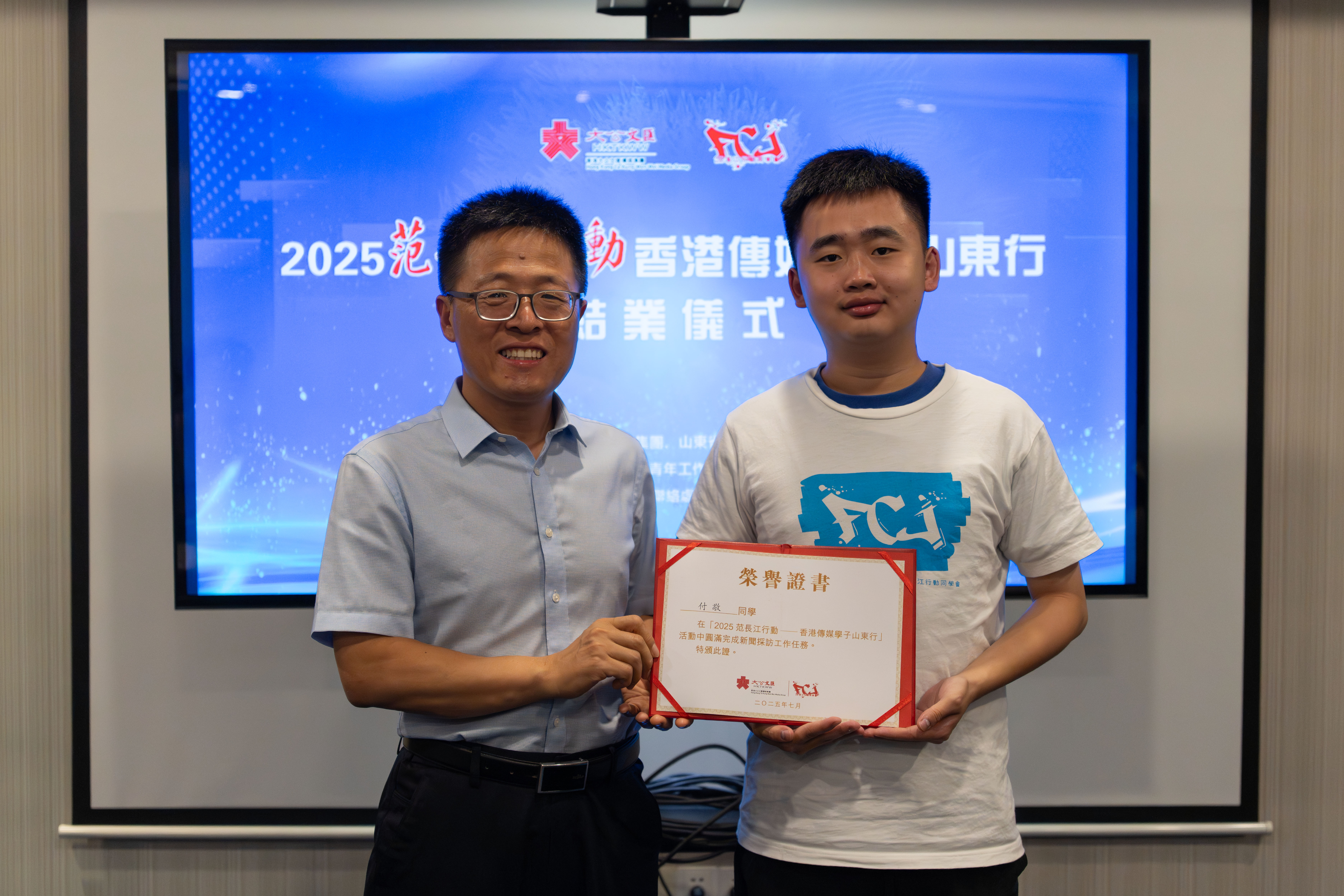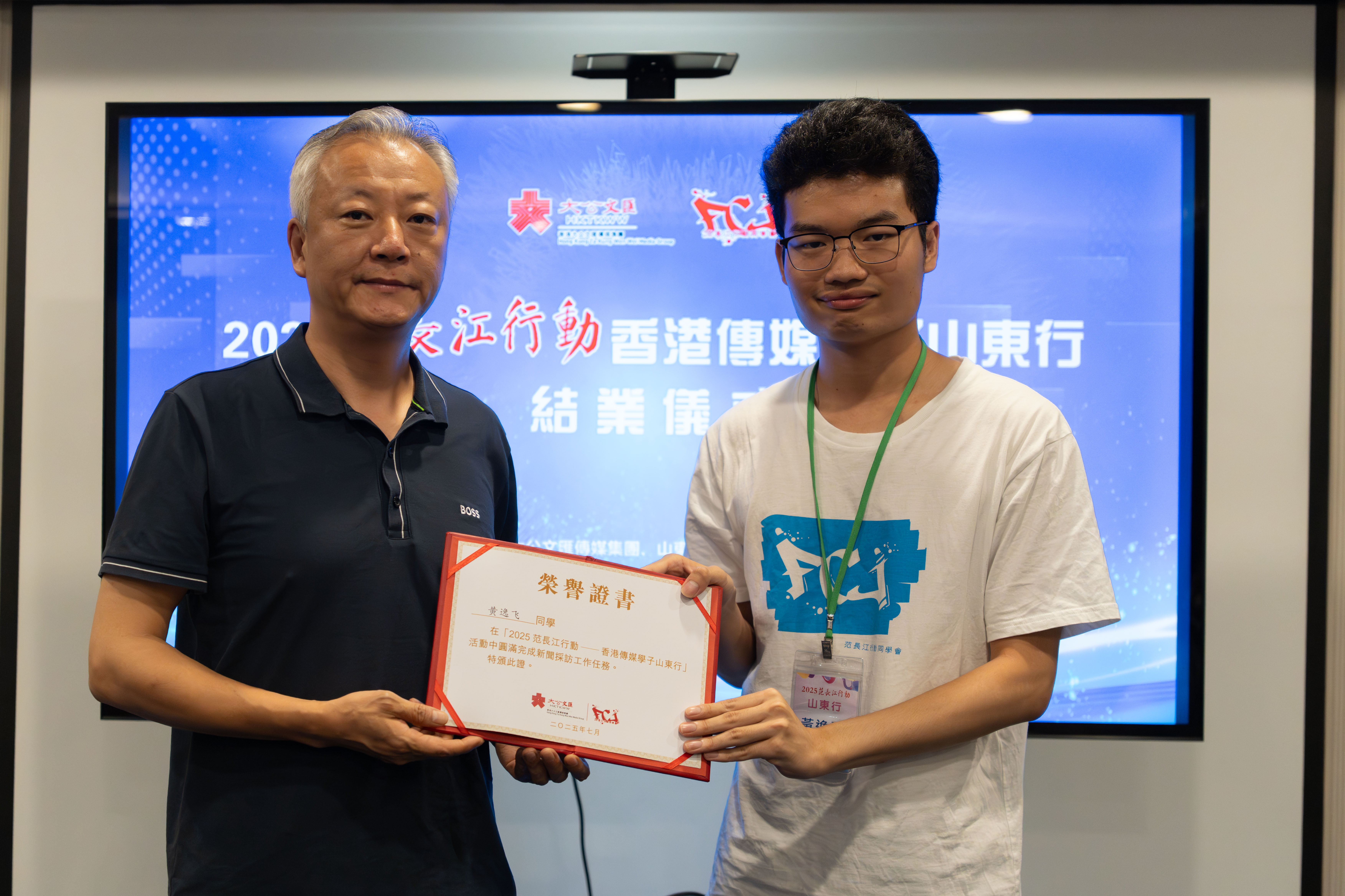 山東省委港澳辦副主任范存榮雖未全程與傳媒學子同行,但他一直關注同學們的採訪行動。看到大家冒着酷暑一路走一路訪,刊發了一篇篇新聞稿件,他備受感動。在當日舉行的結業儀式上,范存榮表示,范長江行動,不僅是一次地理上的跨越,更是一次文化之旅、實踐歷練。8天的行程,傳媒學子們對山東有了初步的認識,他希望大家將此次在山東的所見所聞、所思所感帶回香港,帶着親朋好友再來深度遊山東。