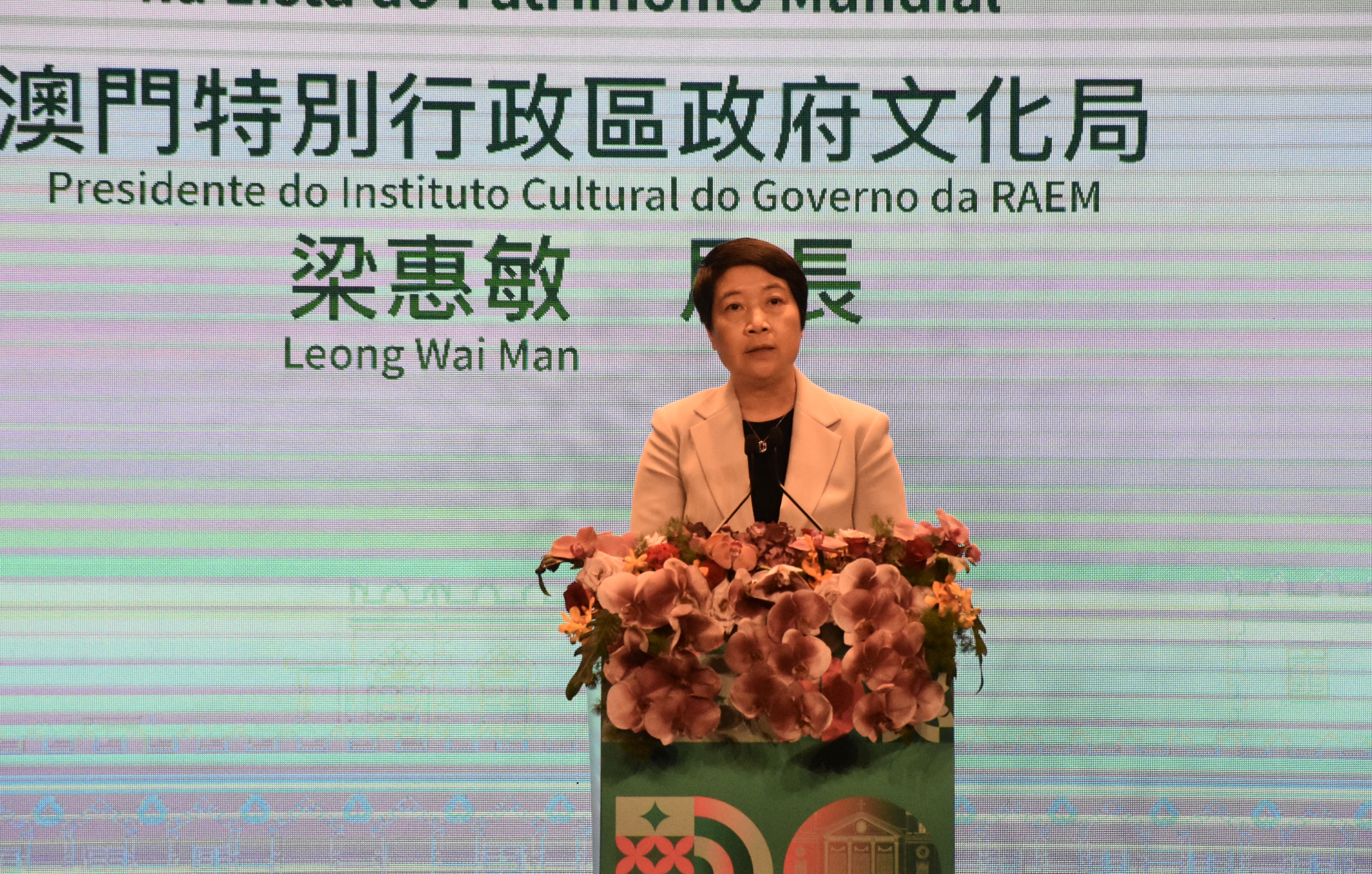 中國文物學會專家委員會主任、故宮博物院學術委員會主任單霽翔,以視像方式送上祝賀。澳門文化局局長梁惠敏致辭表示,「澳門歷史城區」是海上絲綢之路的關鍵節點,開啟了東西方文化交流的金色大門,特區政府始終遵循世界遺產保護的理念精神,與社會各界合力做好「保護傳承」與「創新利用」的工作,續寫澳門中西文明交流互鑒的新篇章。