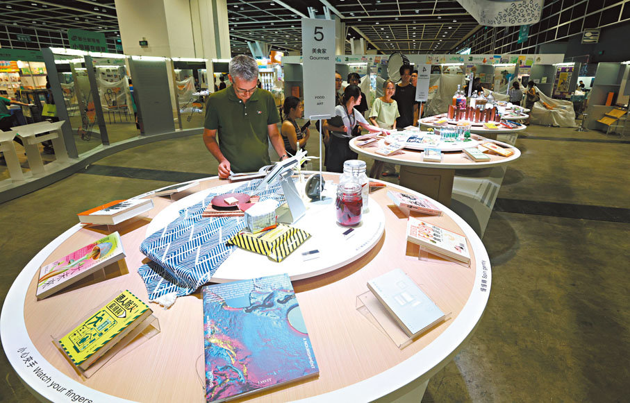 (香港文匯報 記者 洪澤楷)由香港貿易發展局主辦的第三十五屆香港書展,今年以「飲食文化·未來生活」為主題,即日起至22日在香港會議展覽中心舉行。今屆書展場內外將呈獻超過620場精彩文化活動,焦點展區「世界文化藝術廊」特別設置創新互動裝置「呢度book位」,讓參觀者以「撳飛攞位」方式回答簡單問題,獲取專屬食譜並前往指定餐桌閱讀書籍、欣賞展品。有書展展區的策展人接受香港文匯報訪問時表示,香港匯聚中西文化,香港書展則匯聚世界文化,是帶領香港文化走出去的重要平台。