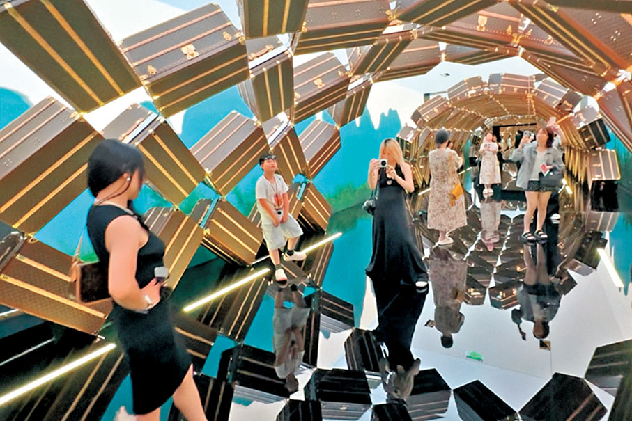 (香港文匯報 記者 孔雯瓊 上海報道)體驗消費正在崛起,有調查發現,在內地和香港,無論Z世代(泛指1995年至2010年出生的人士)還是高淨值人群,更具體驗感和服務價值的消費已成潮流,滿足精神層面需求成為現今消費的核心動力之一。有奢侈品牌抓住這一消費新風向,積極布局。近日,路易威登(LV)「路易號」巨型郵輪「開進」上海市中心,成為現象級打卡地標,帶動周邊商圈客流激增。有統計顯示,截至7月上旬,「路易號」日均客流量約1萬人次,周末高峰時更可達2萬人次,並帶動周邊商圈興業太古匯整體客流達到平日的3倍。香港文匯報記者近日探訪「路易號」發現,其7月的預約已爆滿,每日眾多消費者和遊客頂着37度的高溫天氣湧入現場打卡,不少親子家庭與老年群體亦慕名前來參觀,顯示品牌活動在多層次人群中的滲透力。