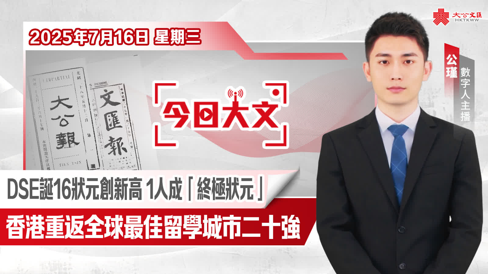 今天是2025年7月16日(星期三),大公文匯網與您速覽報紙看點。