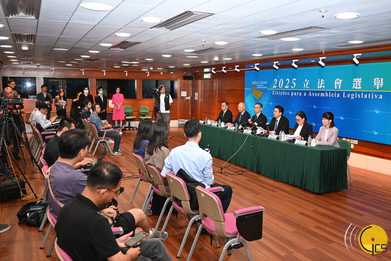 大公文匯全媒體報道,7月15日,澳門立法會選舉管理委員會舉行工作會議,並於會議後舉行新聞發布會公布查核結果。立法會選舉管理委員會主席盛銳敏宣布,按照維護國家安全委員會14日致送選管會的審查意見書,「澳門創建民生力量」候選名單中,6名候選人黃德來、梁小玉、謝明霖、周志輝、魏家鳯、馮啓豪,以及「傳新力量」候選名單中,6名候選人林宇滔、甄慶悅、謝伊琪、蕭盈榮、陳俊明、張奕聰不擁護基本法,不效忠中華人民共和國澳門特別行政區,故選管會對這12人作出不符合候選資格的決定。
