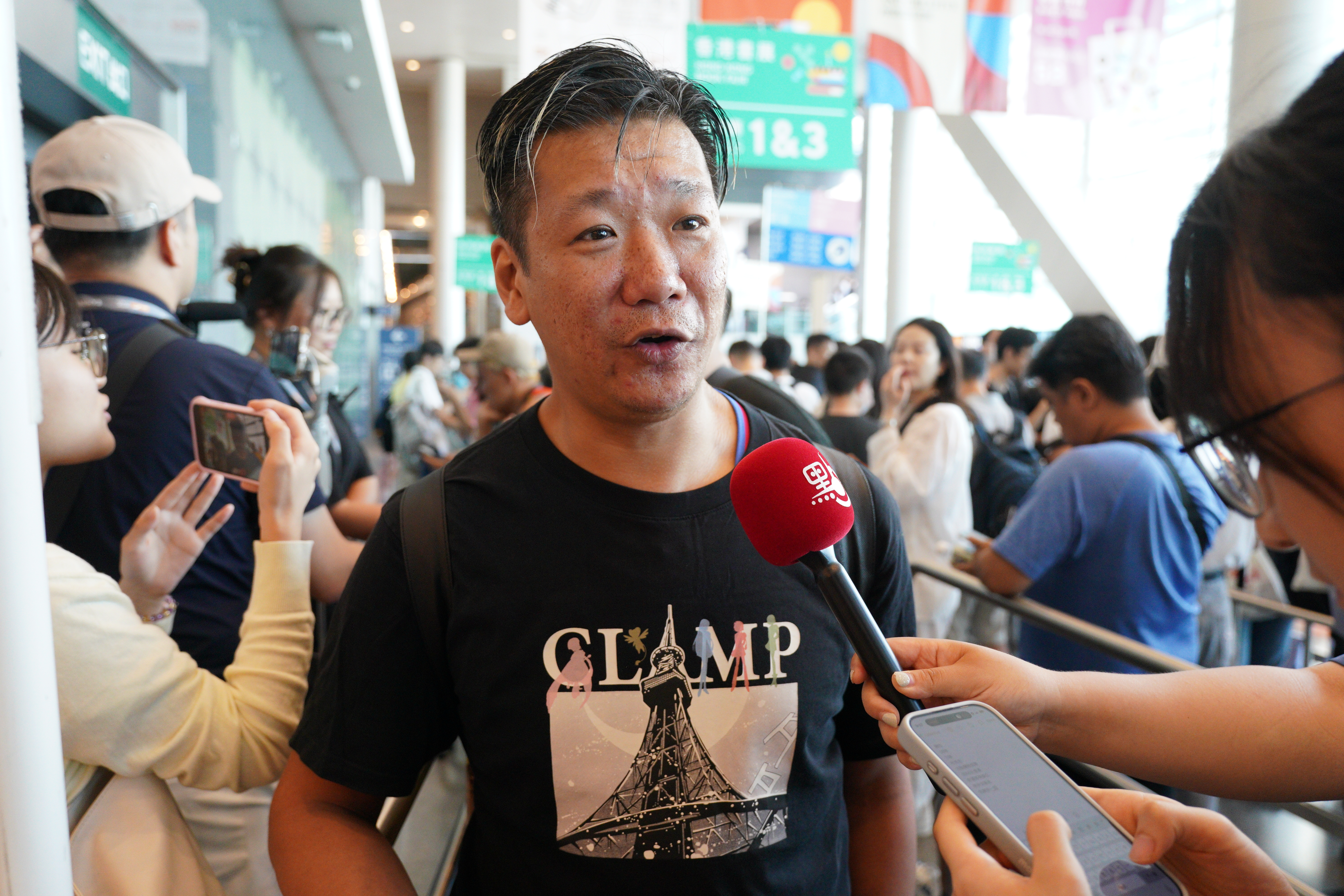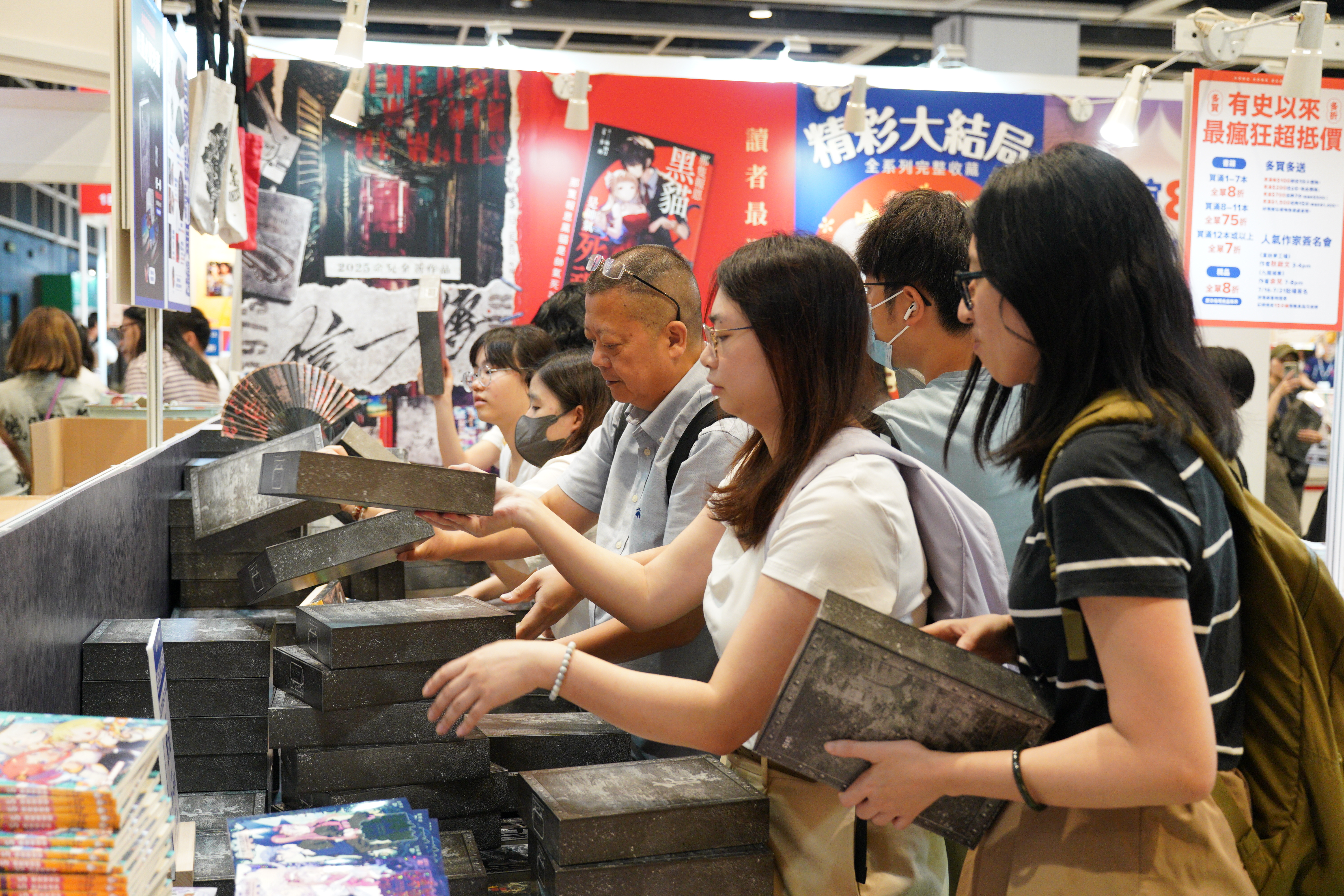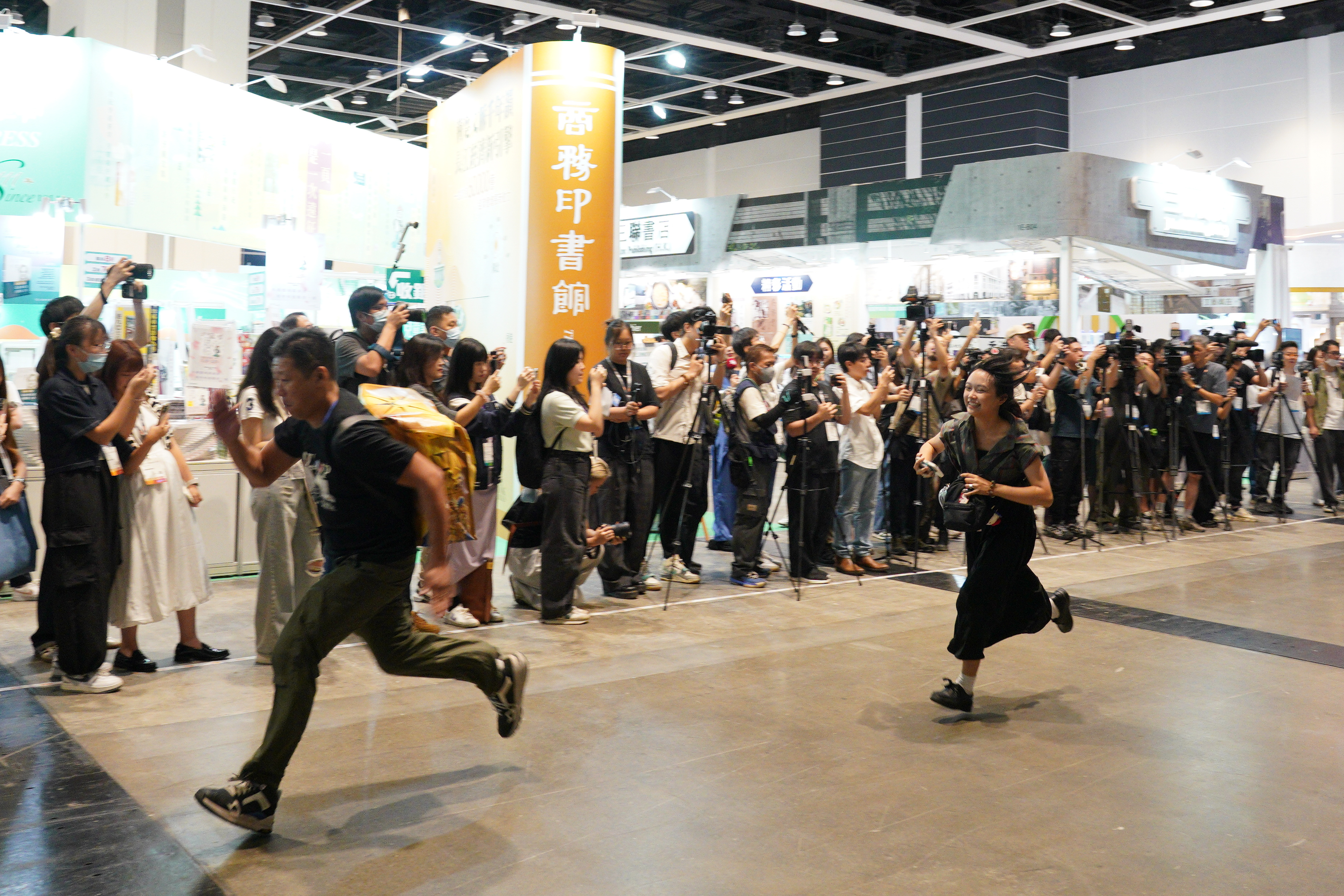書展今(16日)早10時正式開幕前,已有大批市民在門外排起人龍。每年都搶佔頭位的杜先生表示,昨晚12時許已到場等候,預算1000港元購書,希望今日第一時間購得喜歡的作家親筆簽名的書籍。甫開閘,數百名書迷更化身百米飛人衝入場,爭先到攤檔搶購心頭好。