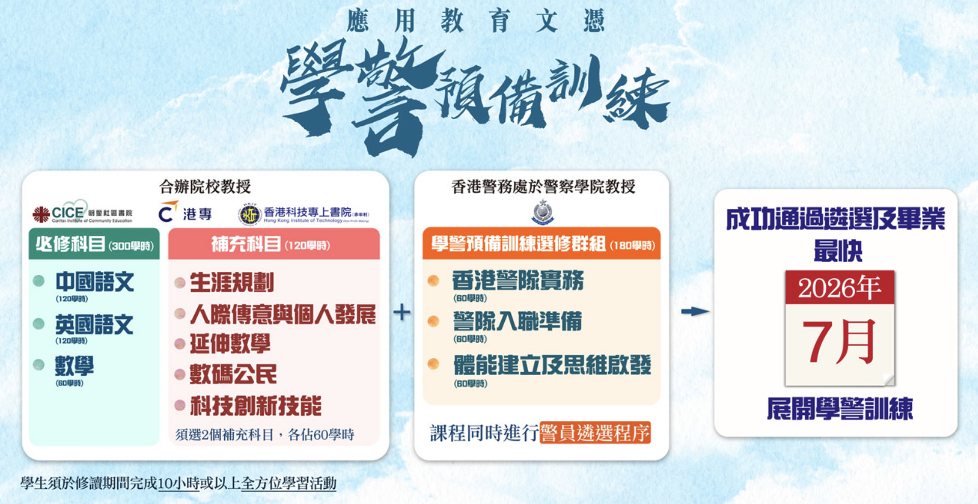 1.為應屆DSE考生提供新機會,修畢課程後所獲學歷及語文能力水平符合投考警員要求