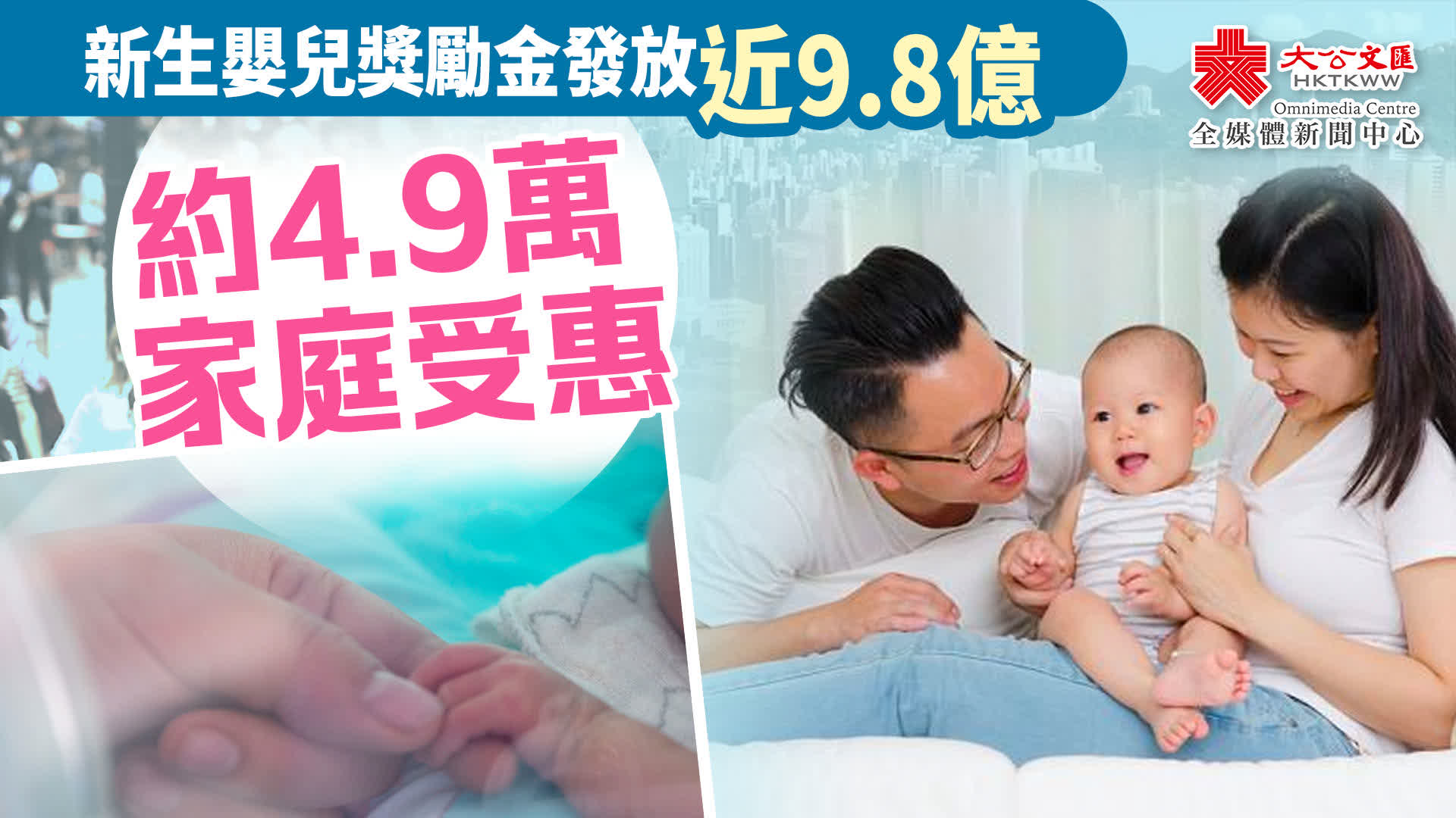 大公文匯全媒體報道,政府在前年施政報告公布向合資格的父母,就每名於2023年10月25日起出生的嬰兒,給予2萬元的現金獎勵,計劃為期3年。勞工及福利局局長孫玉菡今日(16日)回覆立法會議員質詢時表示,截至上月底,政府共接獲49567宗合資格申請,並已向48984名申請人發放獎勵金,總發放金額約為9.79億元。