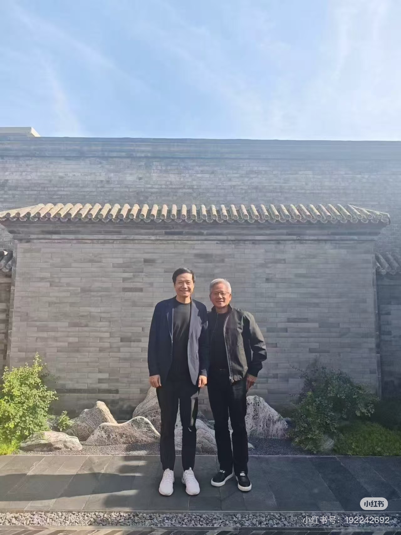 早些時候,黃仁勳在北京35℃高溫下仍穿皮衣與雷軍合影,這次身穿唐裝亮相鏈博會,一度引發關注。他曾解釋之所以高溫下仍穿皮衣,是因為唯一的一套西裝沒來得及乾洗,還有點被穿壞了,開玩笑稱「希望穿的皮夾克看起來還行」。