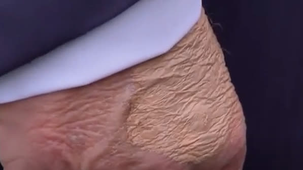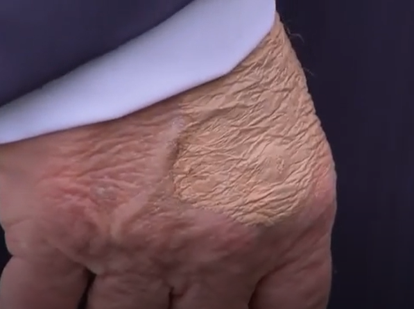 據報道,特朗普15日接受採訪時,一台攝像機捕捉到他手上不自然的顏色並放大拍攝。報道提到,今年2月,特朗普在與法國總統馬克龍會晤時被發現手部有一塊瘀青,引發人們猜測。今年4月,特朗普在出席一場活動時再次被拍到手部使用遮瑕膏。