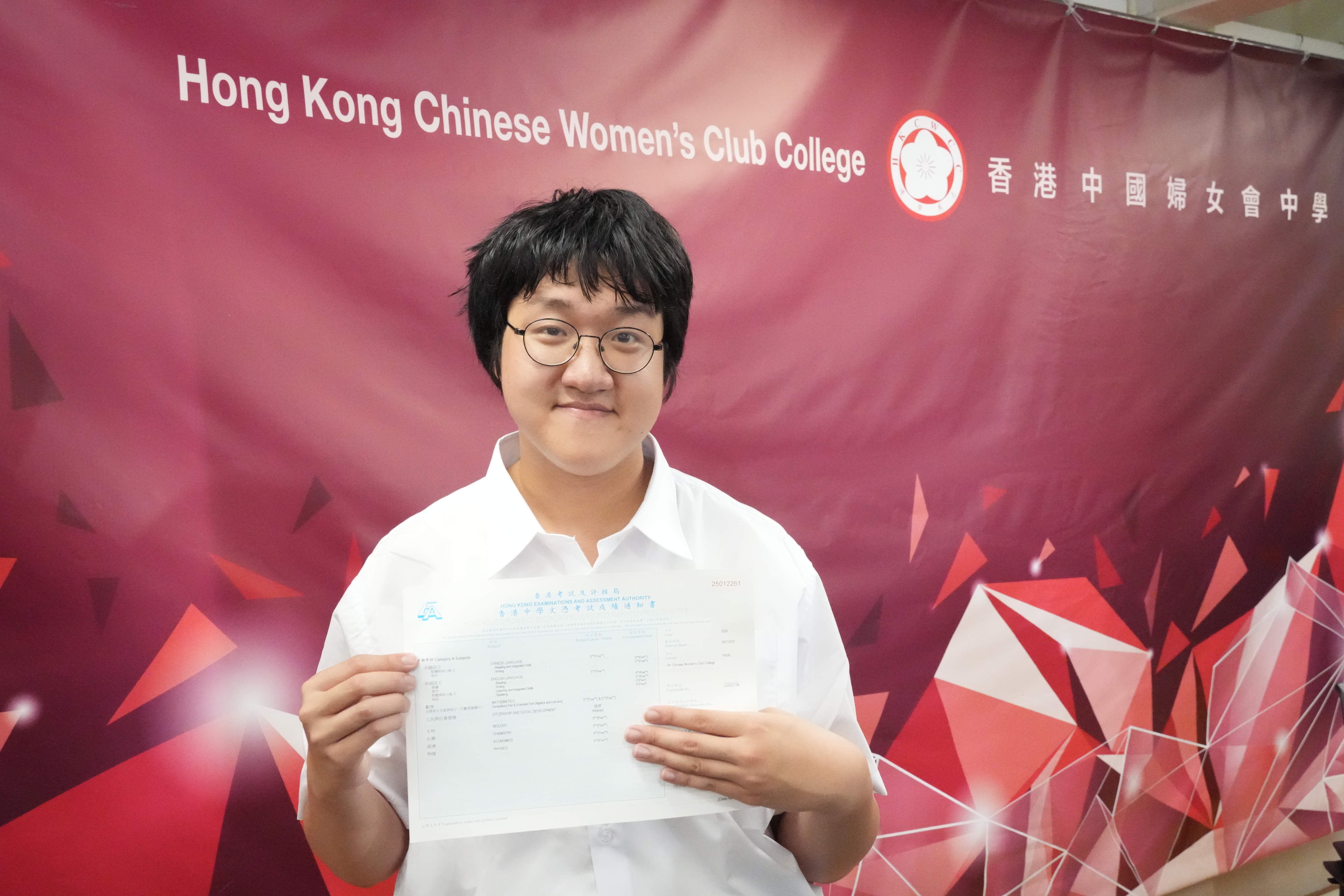 張祝珊英文中學「狀元」邱博恩中文、英文、數學、化學、資訊及通訊科技及物理取得5**。數學延伸M2獲5。他計劃赴劍橋修讀自然科學。