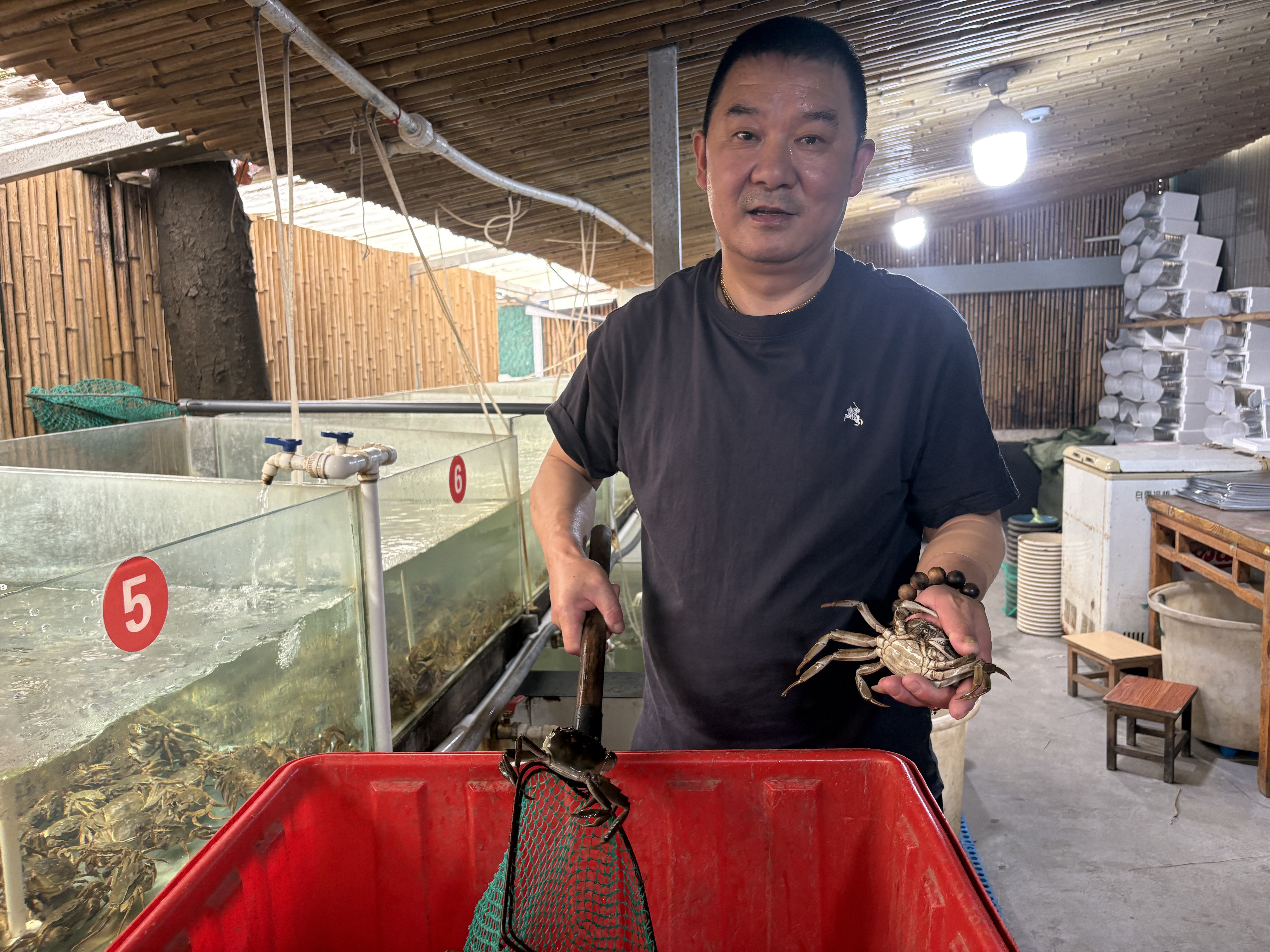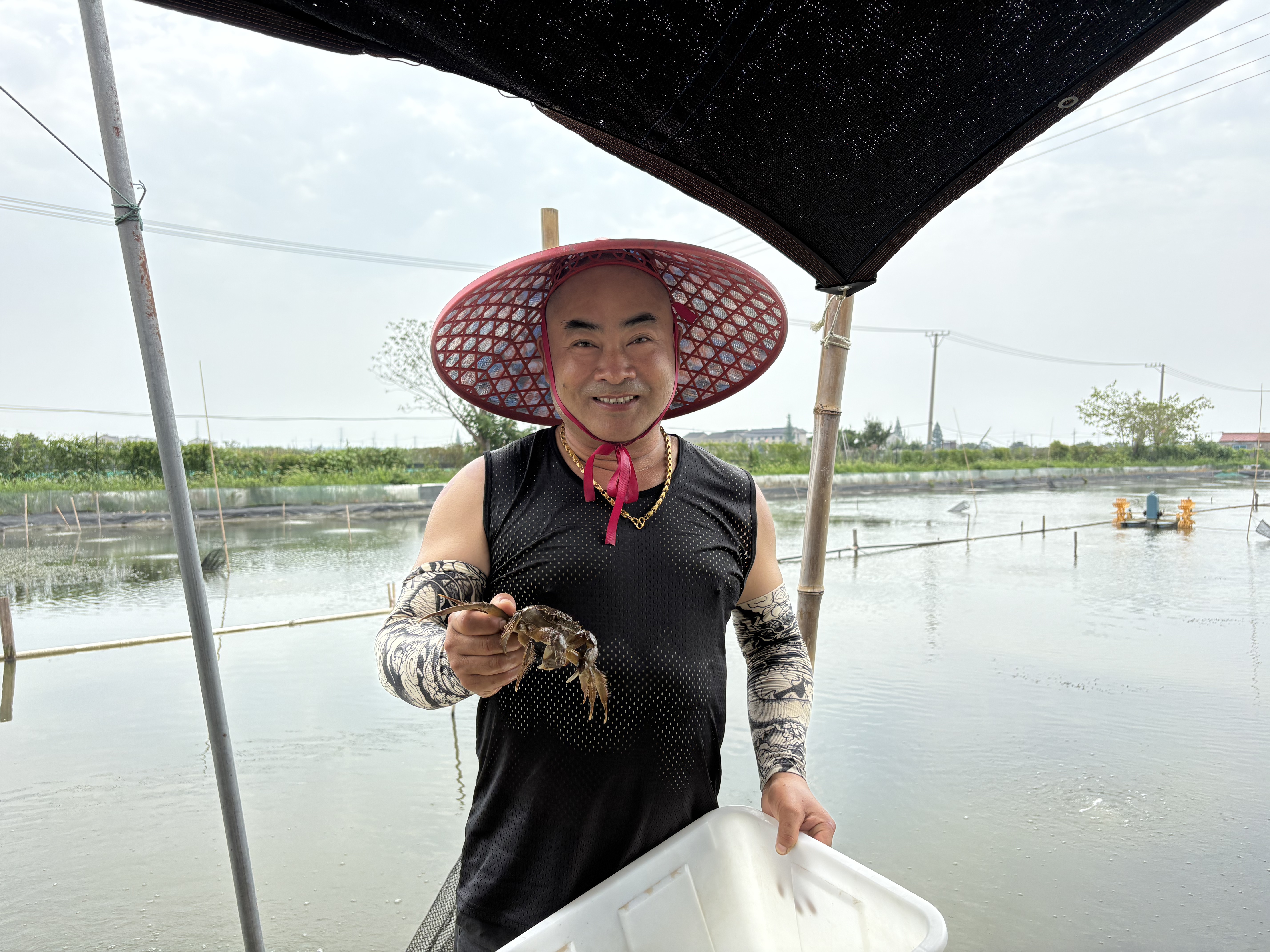 今年53歲的金雪林是江蘇省常熟市沙家浜鎮唐東村村民,自16歲起隨父親在陽澄湖養蟹,迄今已養蟹37年。他開挖了24畝高標準池塘,2024年每畝蟹產量380斤,產出的3兩以上高品質「6月黃」深受市場熱捧。