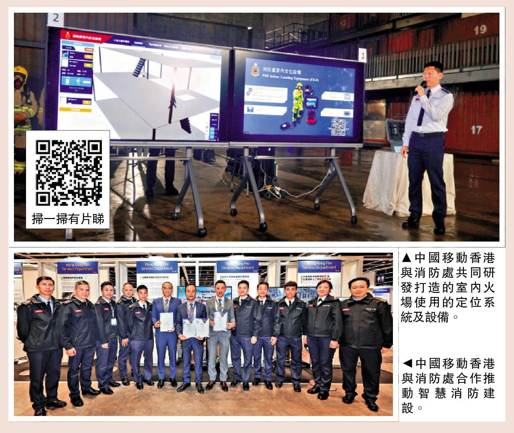 另外,為解決香港樓宇林立、高層建築多、結構複雜、傳統定位技術在室內環境中受限、救援難度極高的痛點,CMHK跟消防處共同研發打造了可在室內火場使用的定位系統,「幫到消防人員在漆黑一片的火場環境裏,有助提升搜救和救災」。
