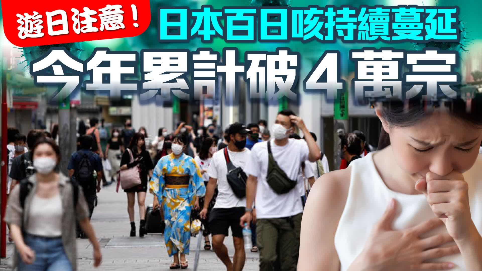 大公文匯全媒體報道,遊日注意!日本百日咳疫情持續蔓延,據日本國立健康危機管理研究機構統計,截至7月6日的一周內,全國共報告百日咳病例3578宗,連續3周創採用現行統計方法以來單周新增病例數紀錄,今年累計病例數突破4萬宗。