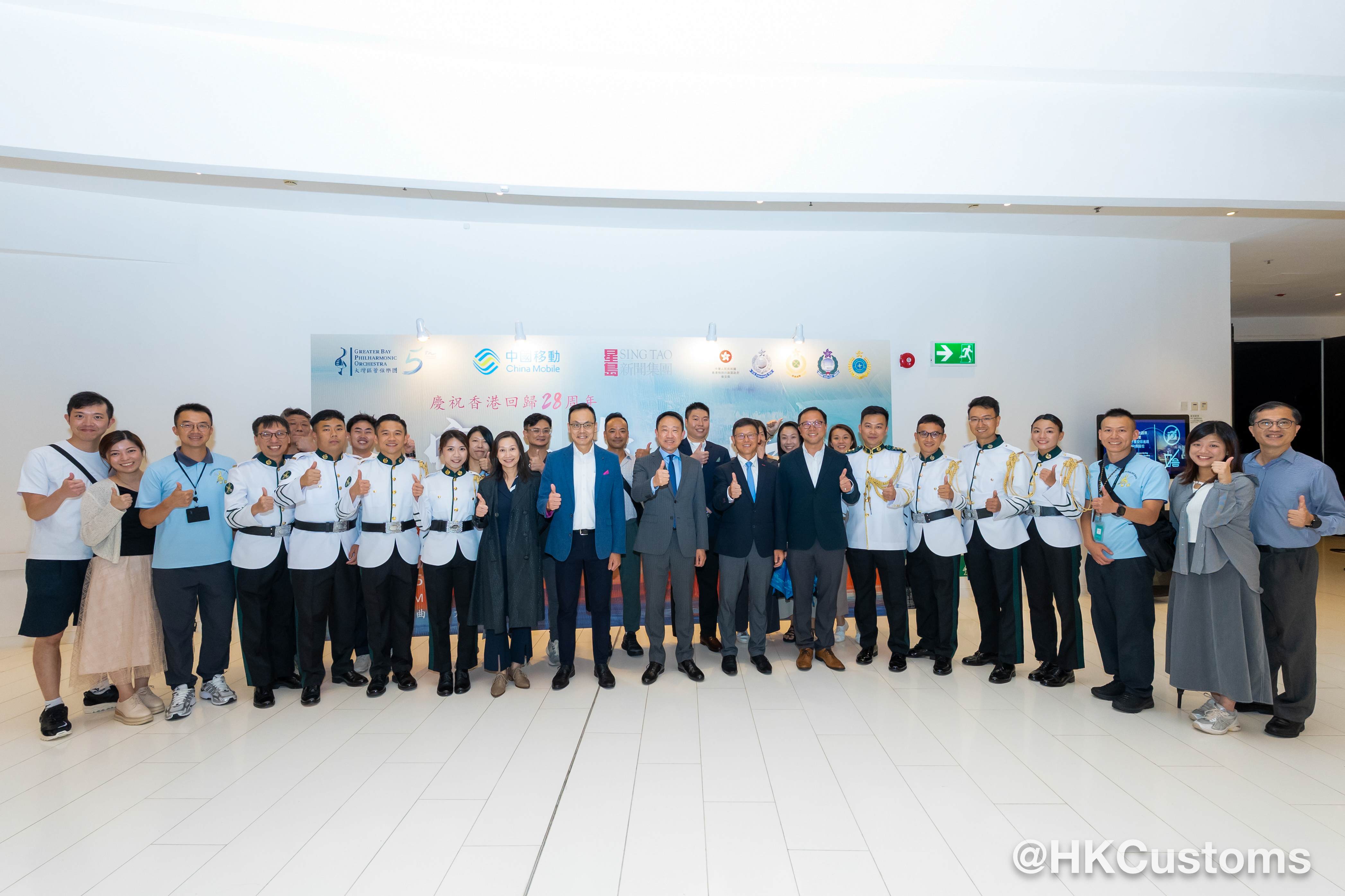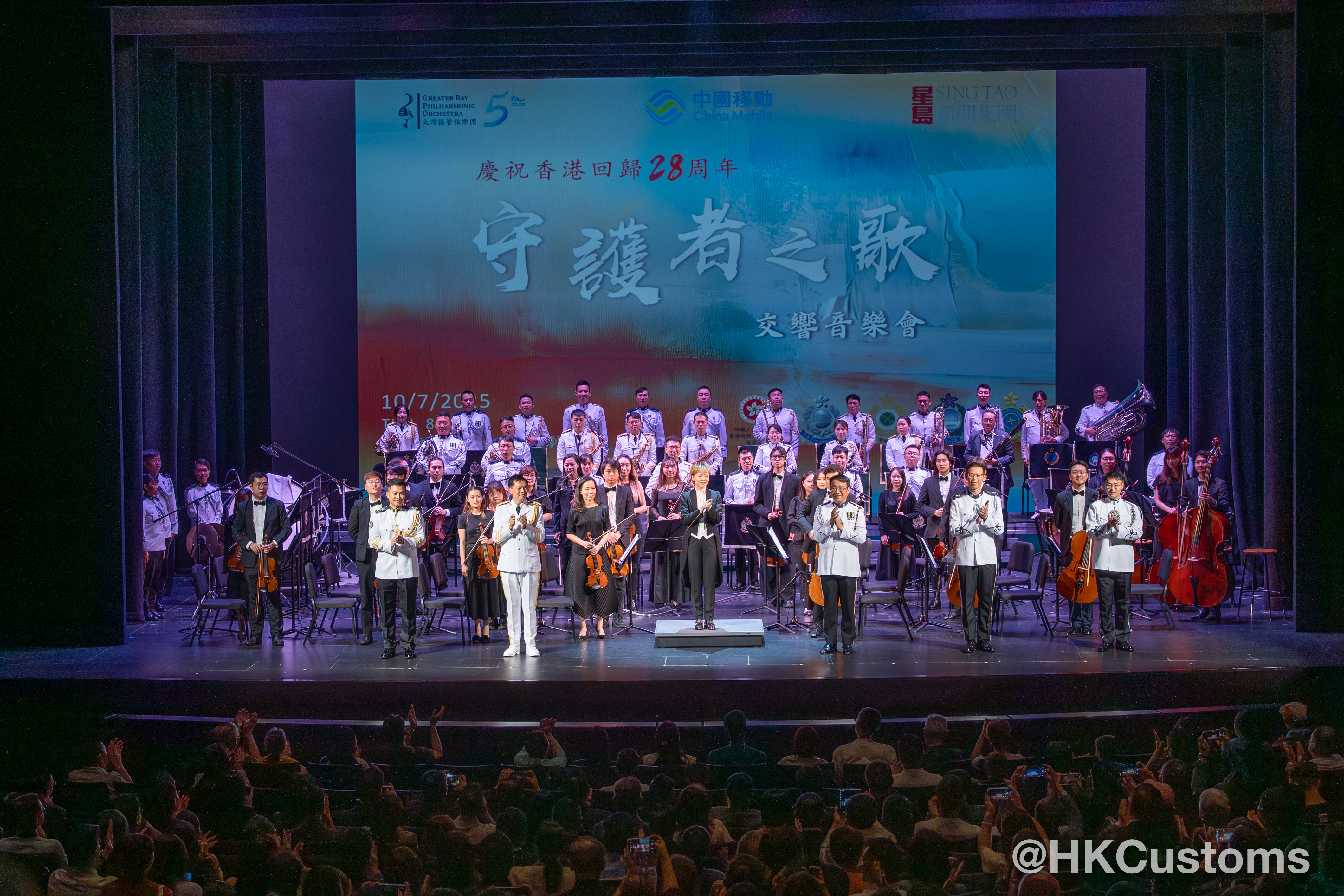 海關樂隊於7月10日聯同警察樂隊、入境事務處樂隊、懲教署步操樂隊、大灣區管弦樂團及共創明Teen合唱團攜手演出,在西九文化區戲曲中心大劇院舉辦《守護者之歌——交響音樂會》。這次演出意義重大,不僅慶祝香港回歸28周年,亦以動人旋律向守護香港的紀律部隊譜寫敬意、傳遞正能量。香港海關關長陳子達、副關長(管理及策略發展)許劍,以及多位長官和同事親友均親臨現場支持。