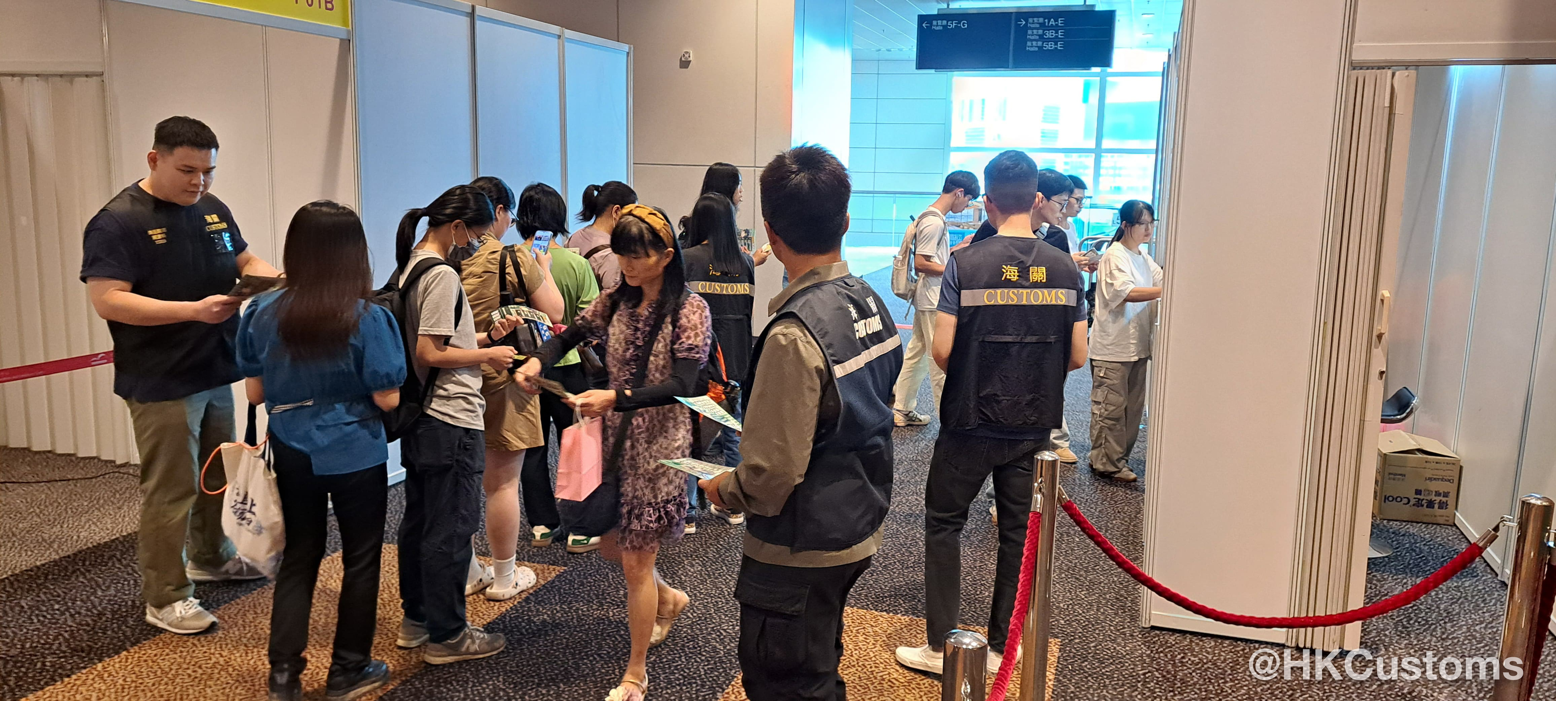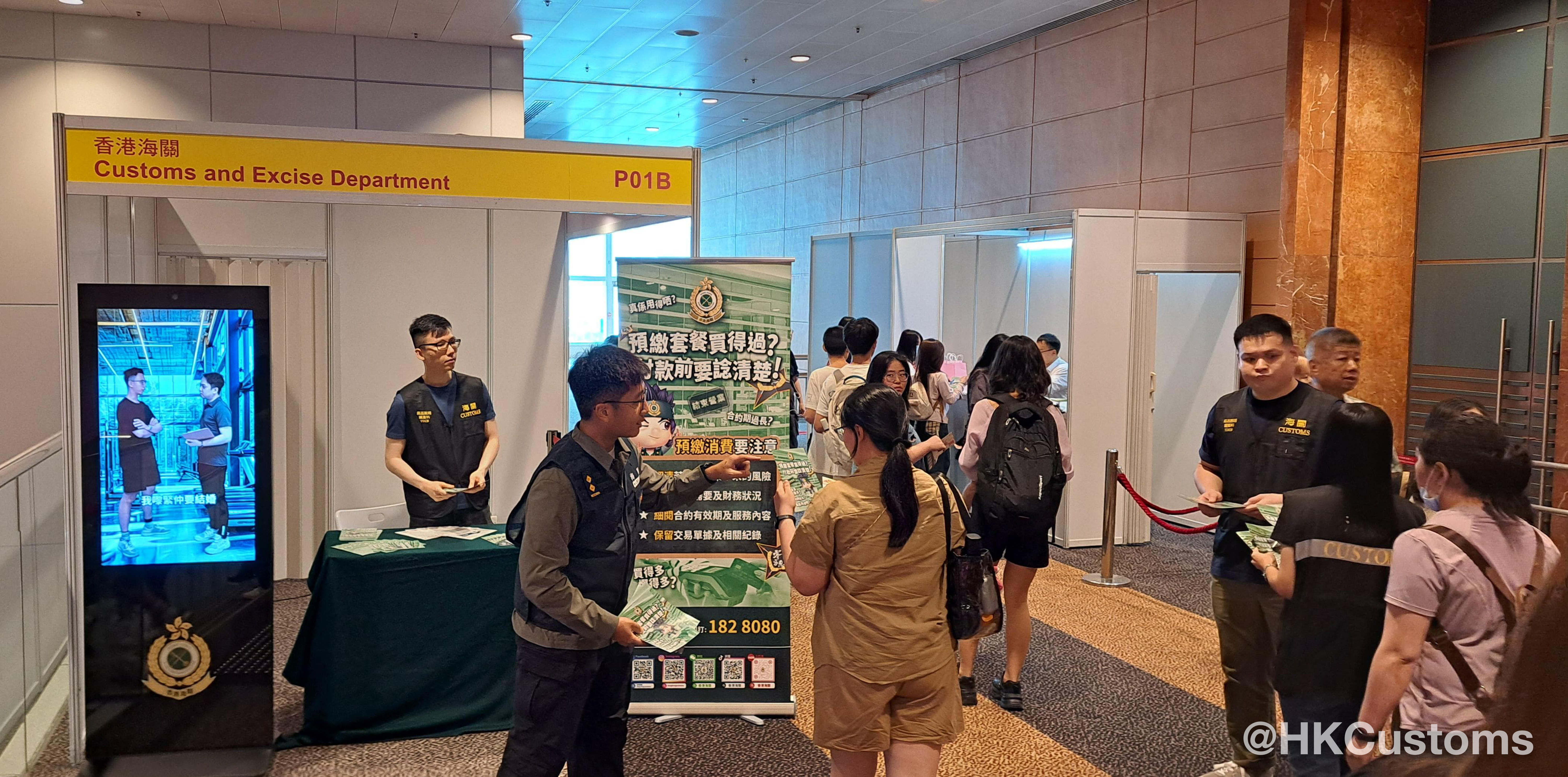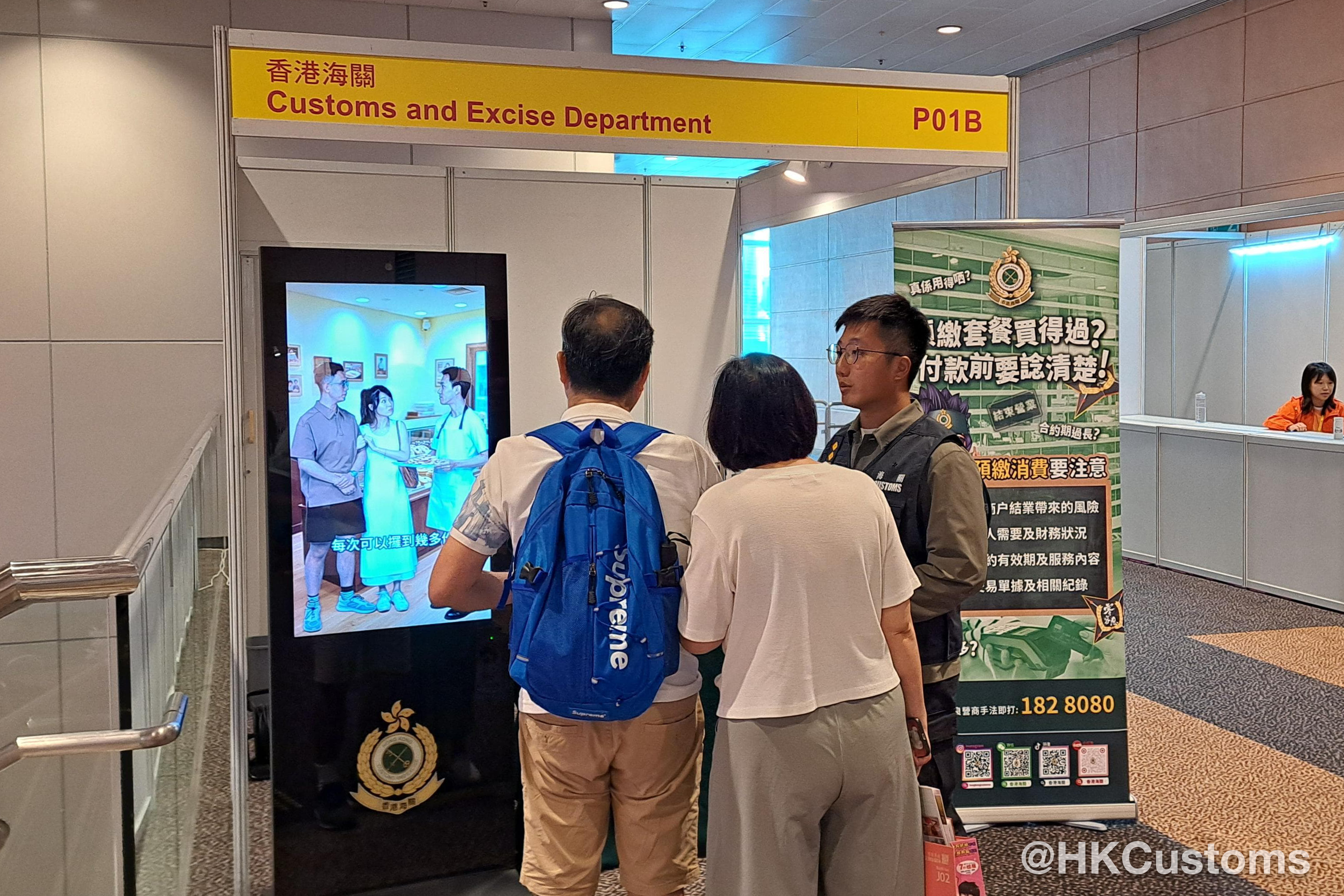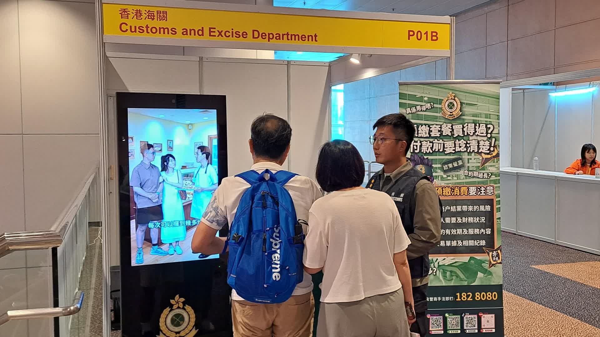 海關宣傳隊馬不停蹄,再次現身會展中心,於剛過去的周末(7月11日至13日)向參加「香港婚紗展暨世界結婚巡禮2025」、「香港婚宴展暨結婚用品博覽2025」的市民派發宣傳單張,提醒消費者在購買預繳套餐時必須注意以下事項: