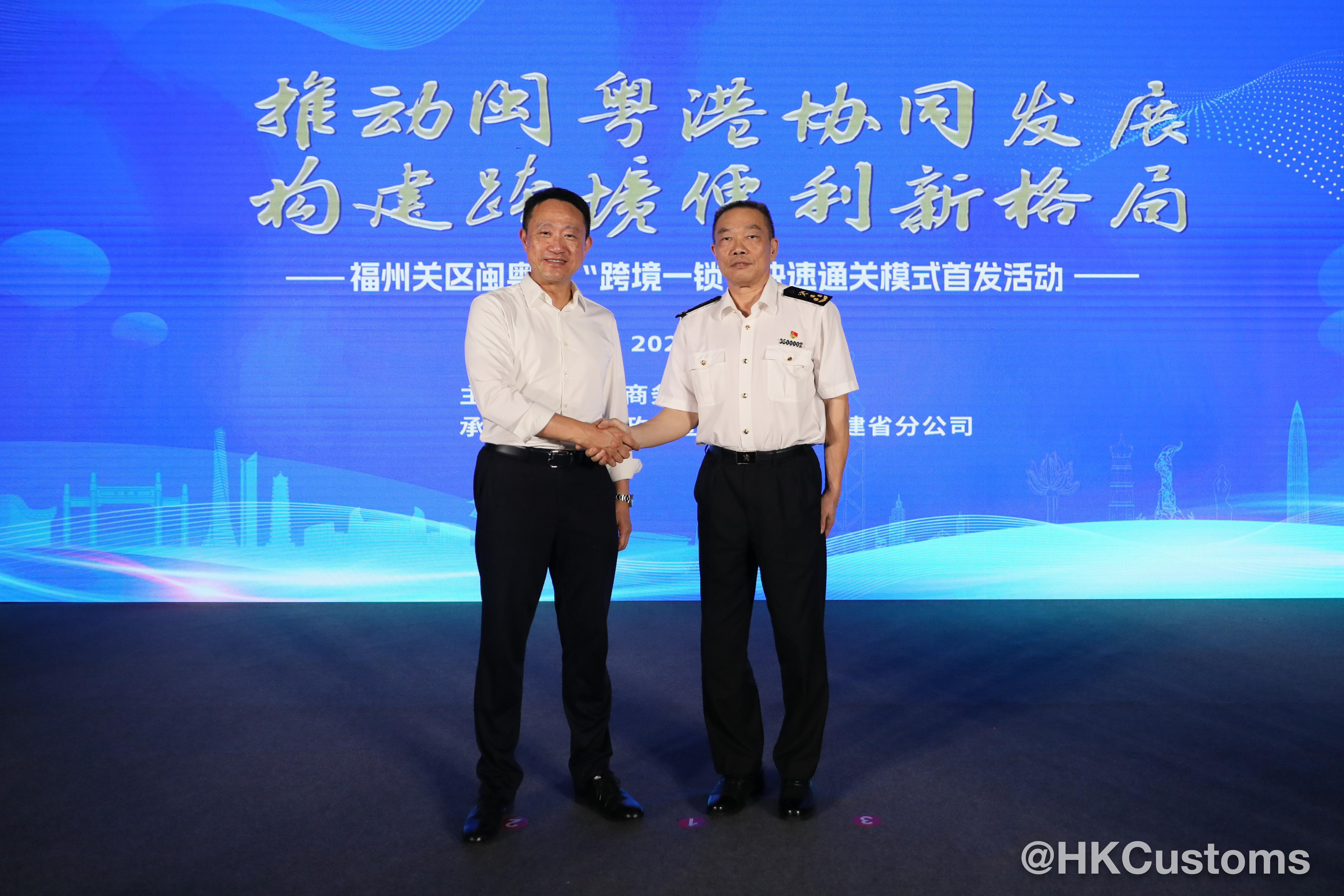 香港海關關長陳子達於七月九日在福州出席福州關區閩粵港「跨境一鎖」快速通關模式首發活動。陳子達致辭時指,福州關區正式開通首個「跨境一鎖」清關點,有助進一步推動閩粵港互聯互通和貨物便捷流動,也標誌着內地與香港海關在通關便利合作上取得新突破。同時,他期望計劃擴展至福州關區後,能夠提升跨境物流多式聯運的效率,讓福州的各式產品進一步走向國際,同時鞏固及提升香港作為國際航運中心、國際航空樞紐和國際物流樞紐的地位和競爭力,創造兩地貿易雙贏局面。