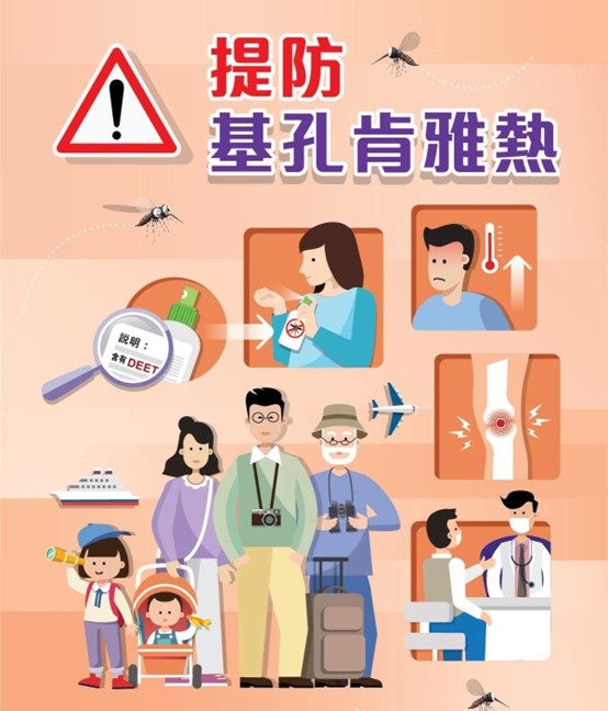 中心發言人說:「香港目前尚未有發現主要傳播基孔肯雅熱的埃及伊蚊,但本港常見的白紋伊蚊亦可以傳播基孔肯雅熱。基孔肯雅熱的輸入個案如在傳染期被蚊子叮咬,有機會導致本地傳播。如控蚊成效不足,更有爆發的風險。因此,市民不應掉以輕心,控蚊工作至關重要,包括防止蚊子滋生及避免被蚊叮。市民不論在本地或外遊時,應時刻注意防蚊控蚊及採取個人保護措施。市民如從受基孔肯雅熱影響地區回港,應在14日內持續使用昆蟲驅避劑。若感到不適,應盡快求醫,並告知醫生外遊細節。」